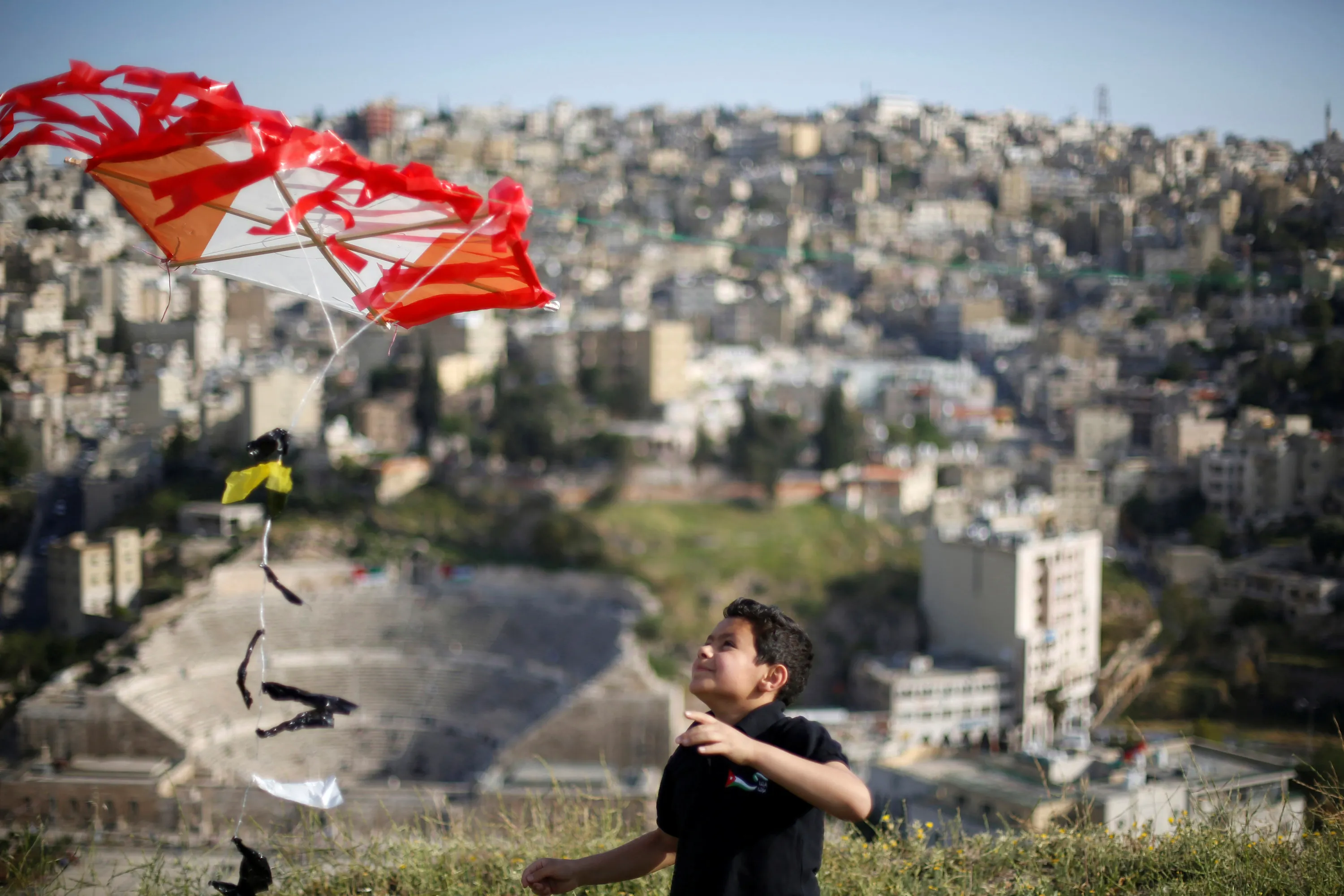 A boy flies his kite during an event celebrating spring at the Citadel in Amman, Jordan, April 15, 2016. (Photo by Muhammad Hamed/Reuters)