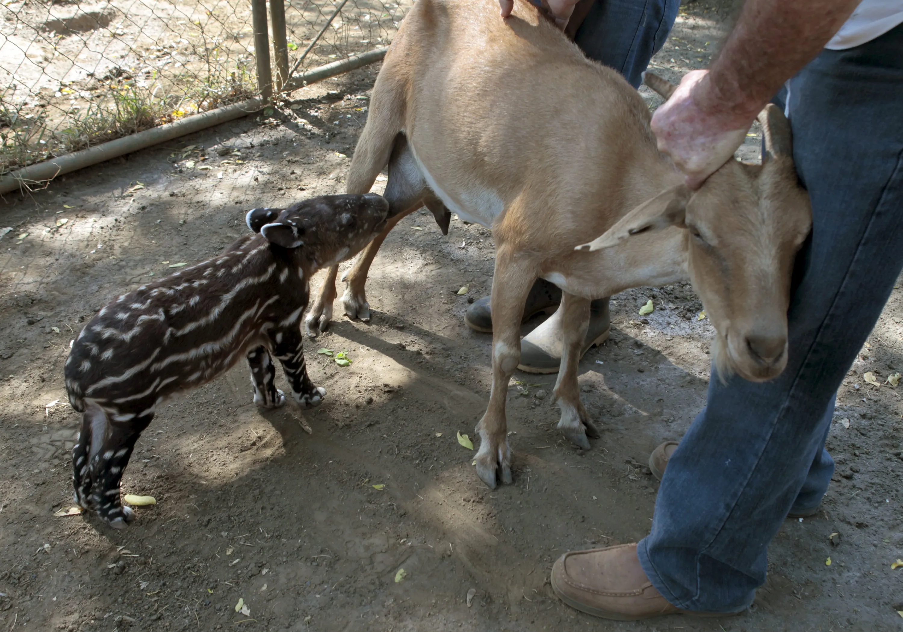A goat feeds a tapir calf, that was abandoned by its mother, at the National Zoo in Managua, Nicaragua April 14, 2016. (Photo by Oswaldo Rivas/Reuters)