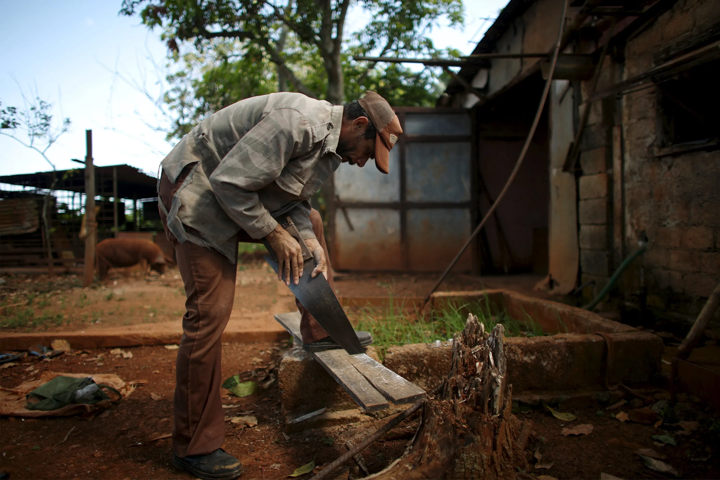 Farmer Enerildo Gonzales works in his ranch near San Antonio de los Banos village in Artemjsa province, Cuba, April 12, 2016. (Photo by Alexandre Meneghini/Reuters)
