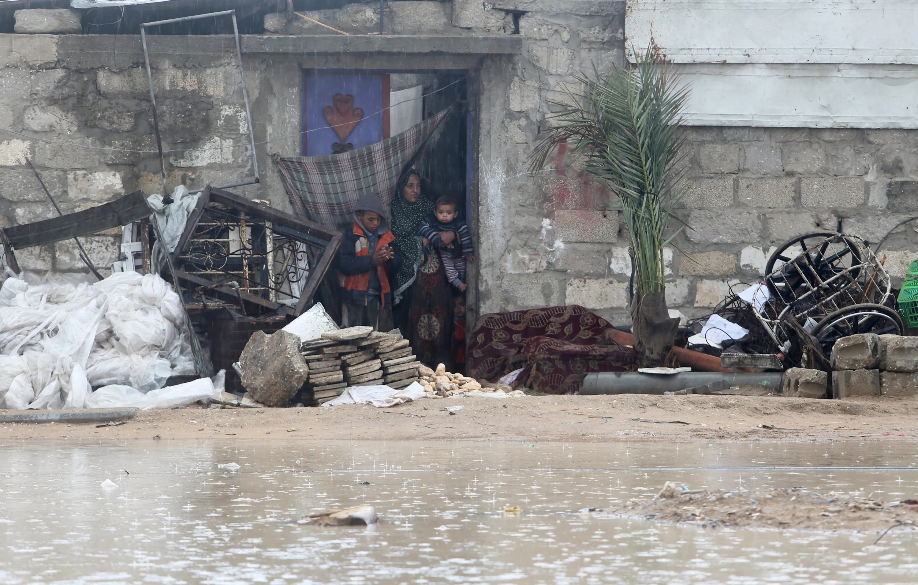 A Palestinian woman stands with her children outside their house on a rainy day in Khan Younis in the southern Gaza Strip February 22, 2016. (Photo by Ibraheem Abu Mustafa/Reuters)
