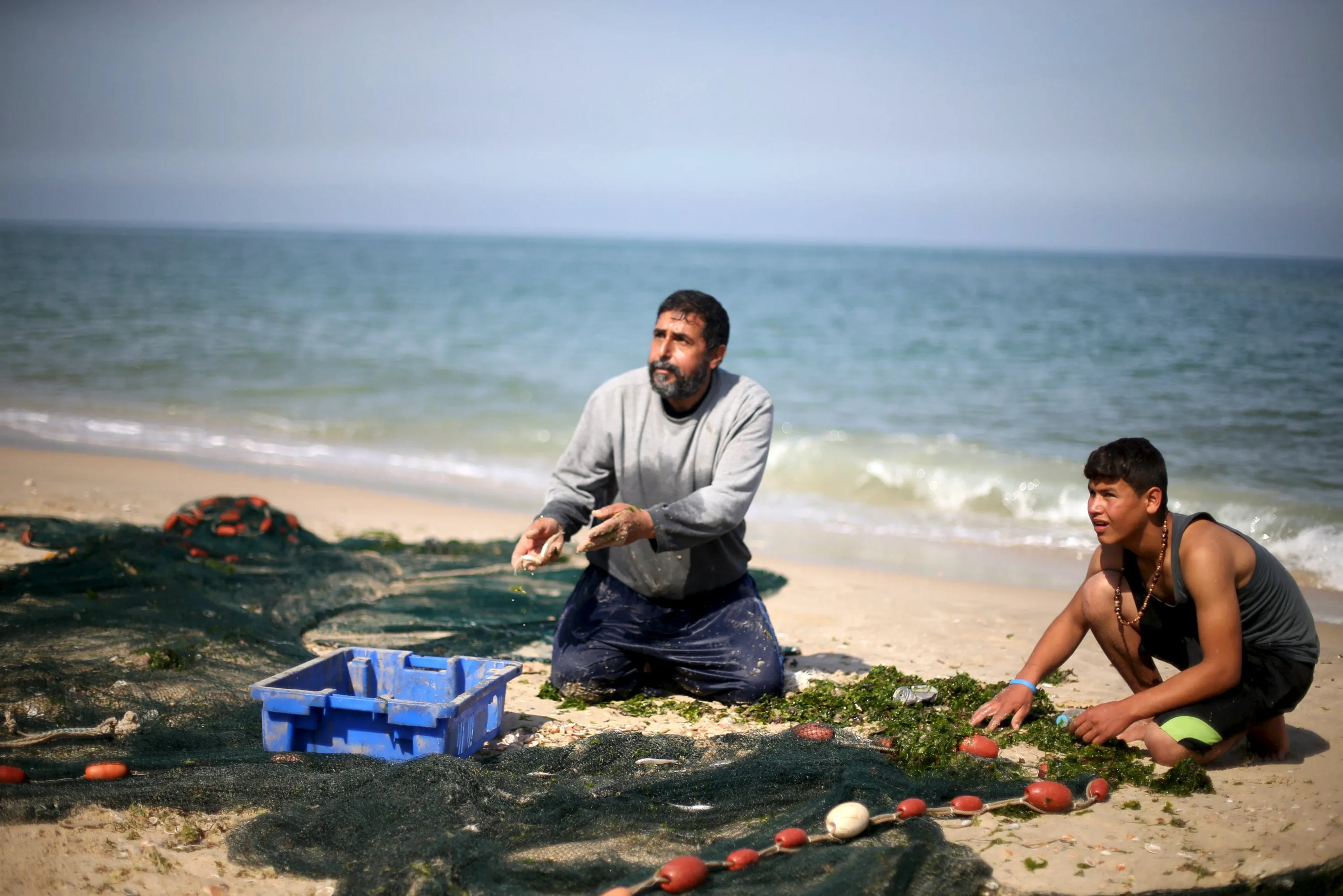 Palestinian fishermen take fish out of their net on a beach in Gaza City April 3, 2016. (Photo by Ibraheem Abu Mustafa/Reuters)