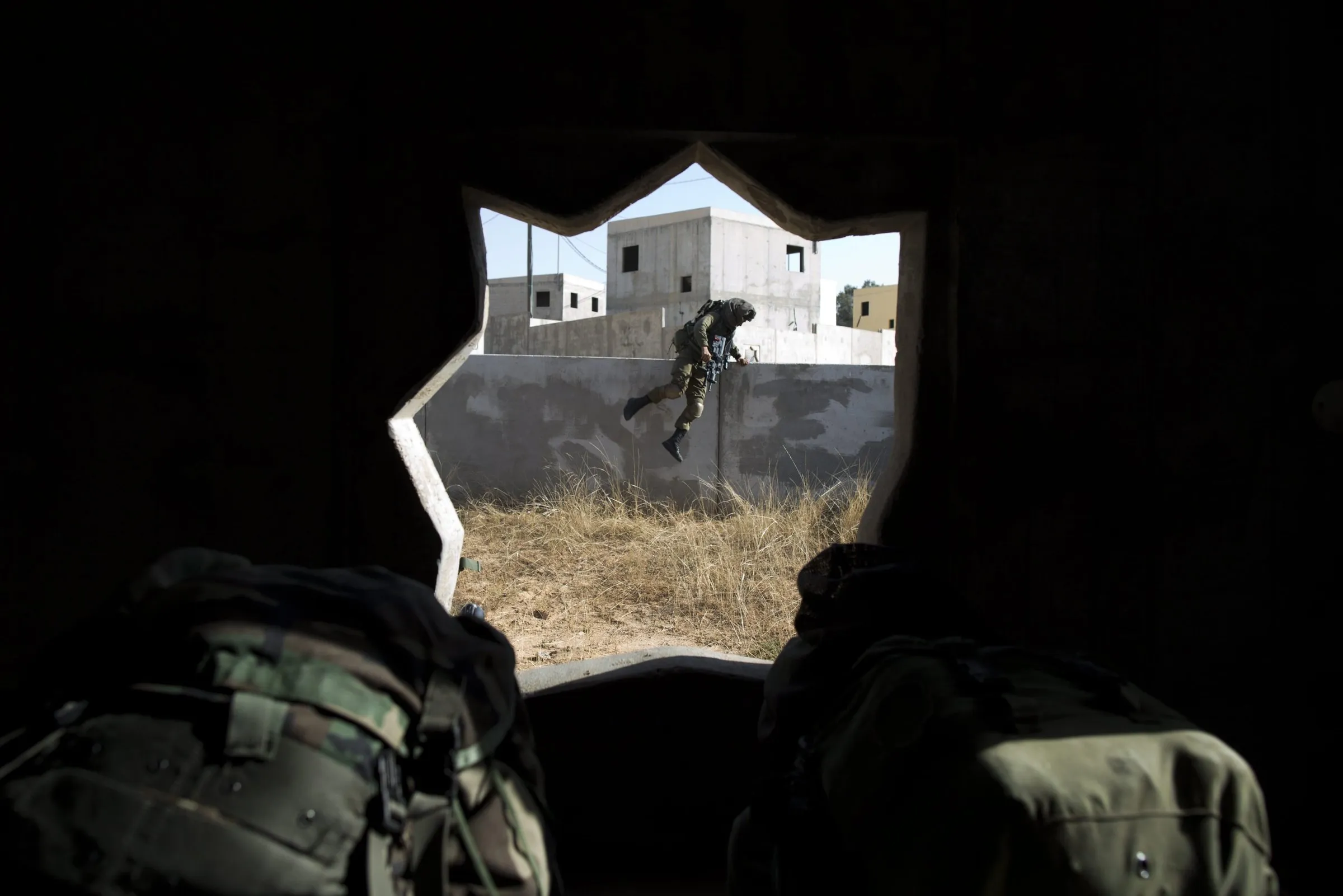 Israeli soldiers participate in a military exercise that simulates fighting in Gaza, at an urban warfare training facility in Tze'elim, southern Israel, 19 April 2016. (Photo by Abir Sultan/EPA)