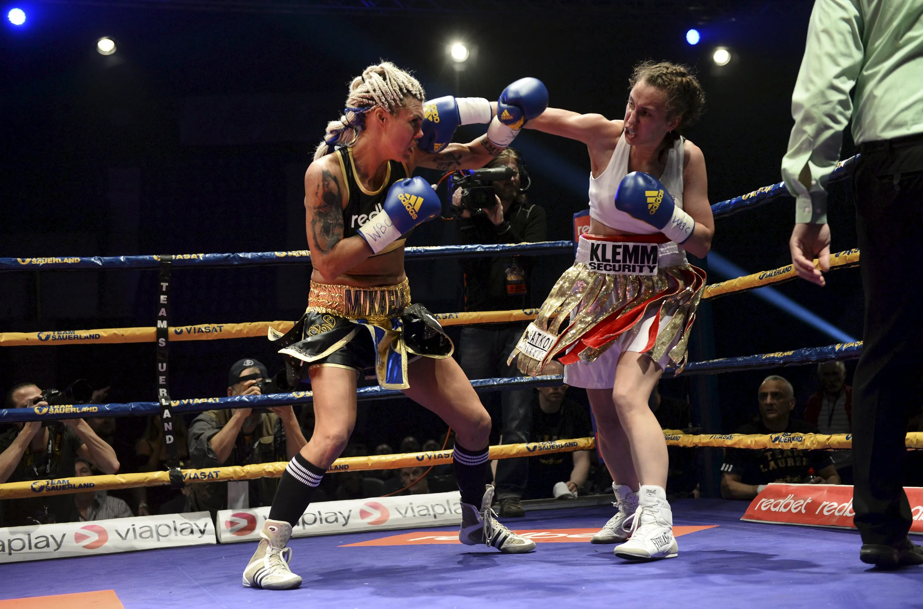 Boxing, WBC Female World Super Welterweight title, Hovet arena, Stockholm, Sweden on April 23, 2016: Mikaela Lauren of Sweden fights Ivana Habazin of Croatia. (Photo by Fredrik Sandberg/Reuters/TT News Agency)