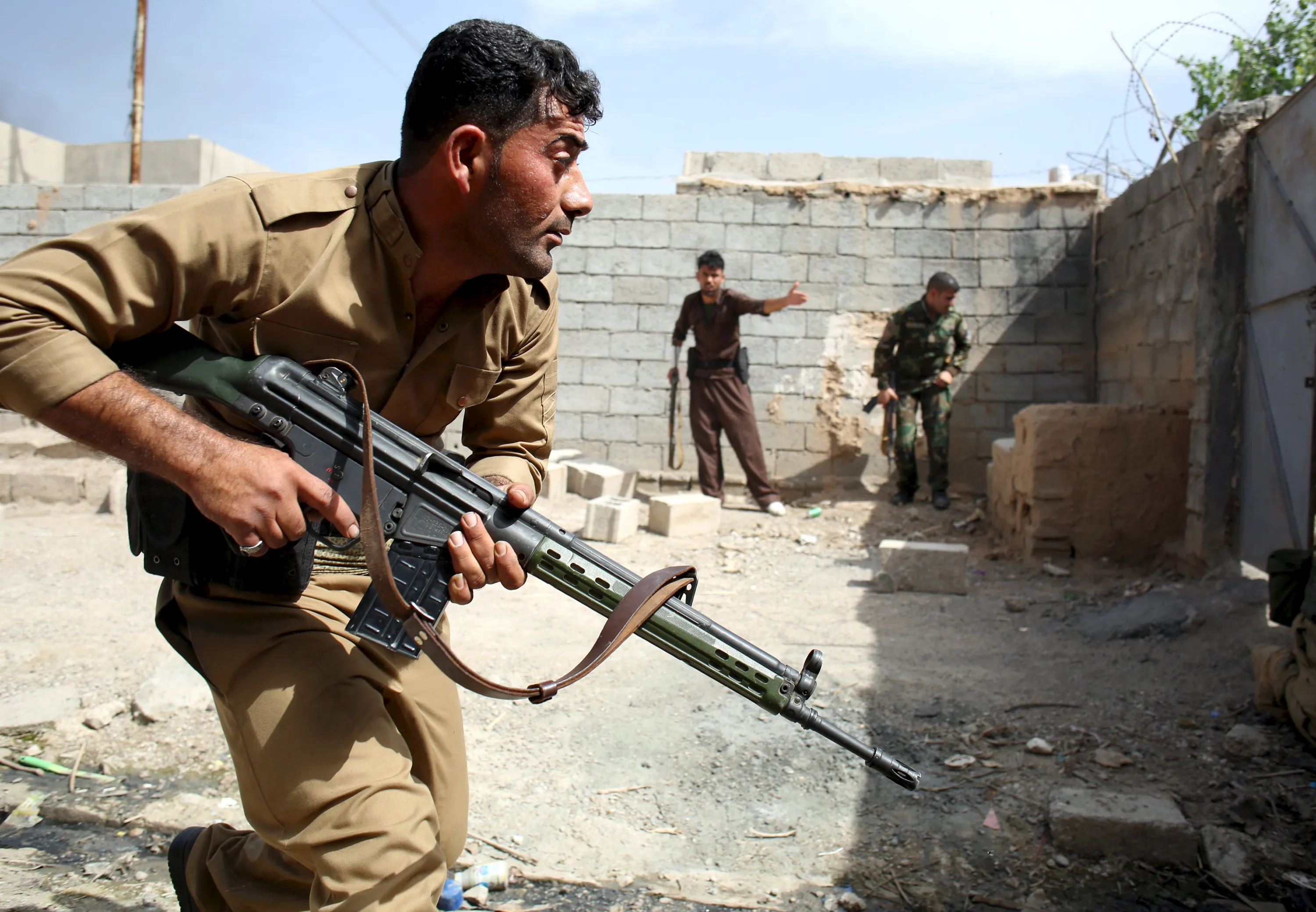 Kurdish gunmen search for Shi'ite militiamen during clashes in Tuz Khurmato, Iraq, April 24, 2016. (Photo by Goran Tomasevic/Reuters)