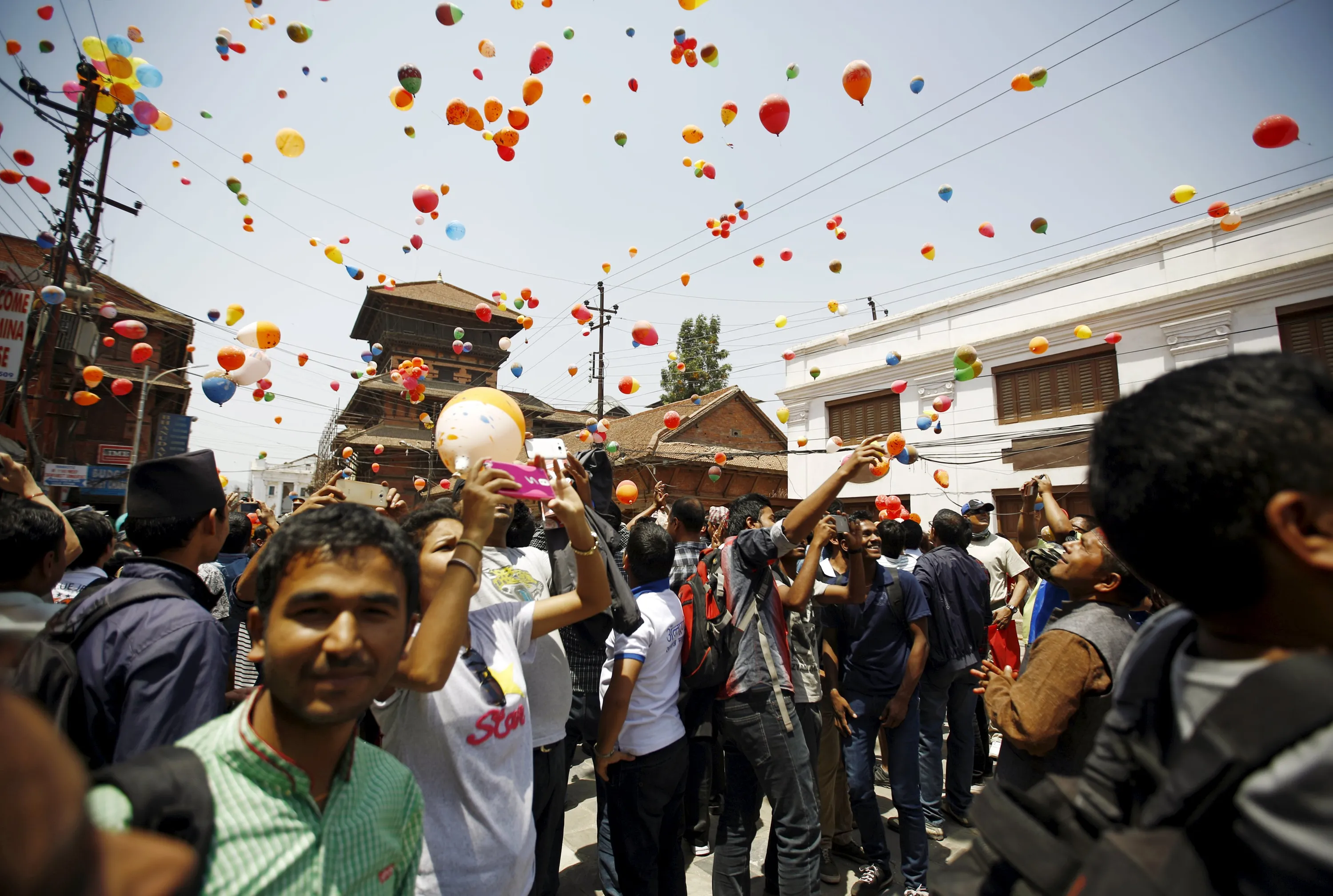 People release balloons during an event organized to commemorate the victims of last year's earthquakes in Kathmandu, Nepal, April 23, 2016. (Photo by Navesh Chitrakar/Reuters)