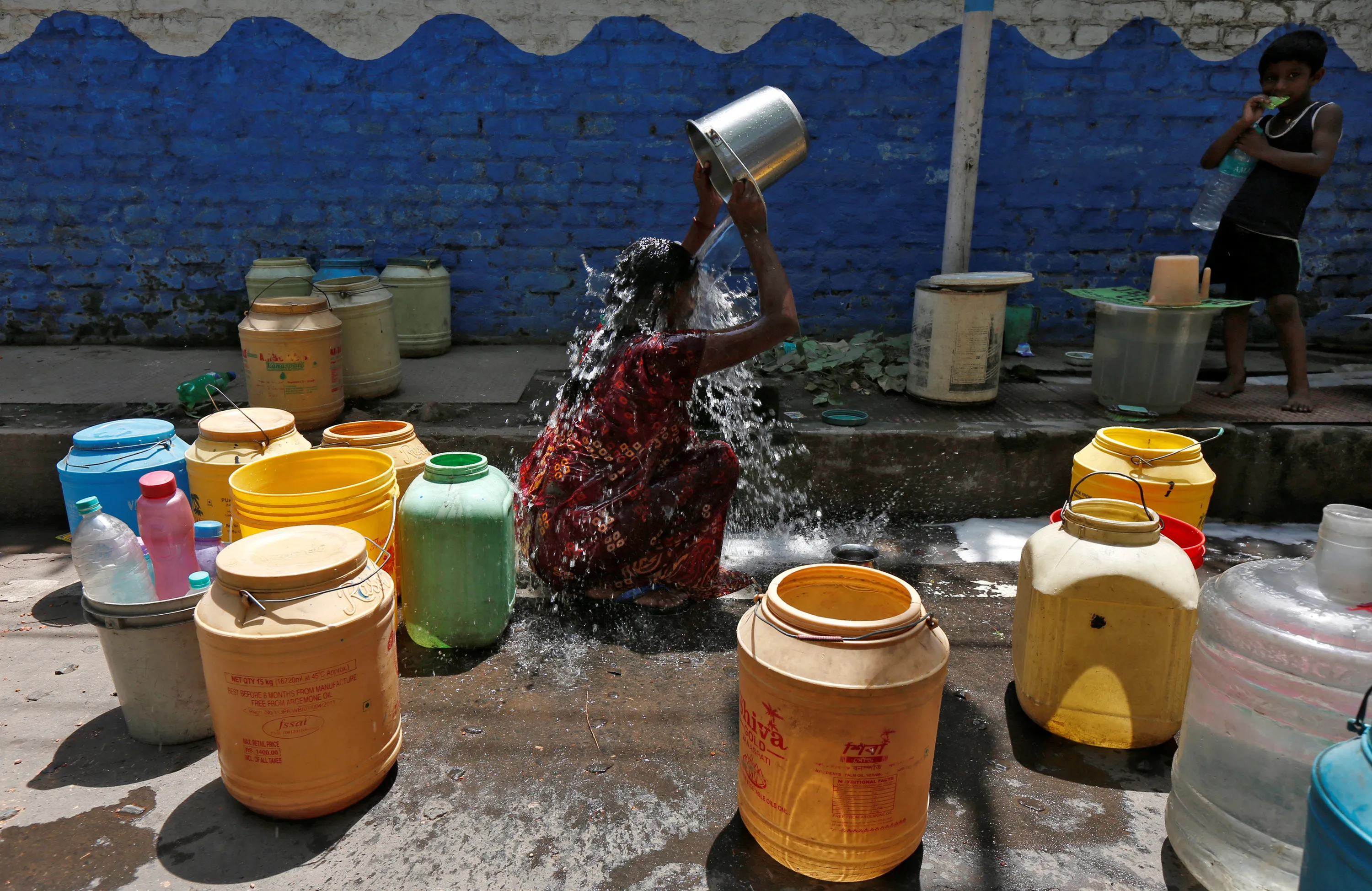 A woman bathes at a roadside municipal tap in a slum area on a hot summer day on the outskirts of Kolkata, India, April 22, 2016. (Photo by Rupak De Chowdhuri/Reuters)
