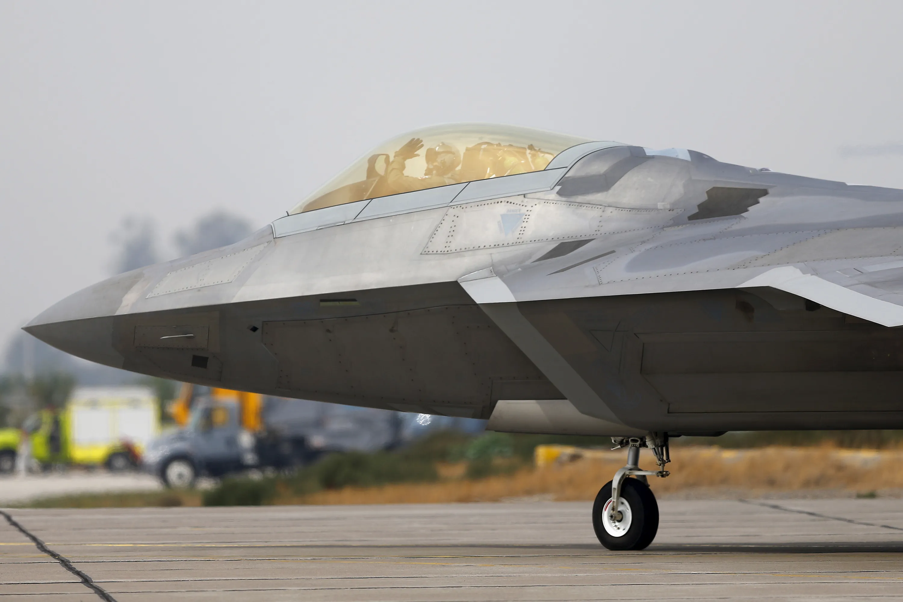 A U.S. Air Force F-22 Raptor fighter jet pilot waves before taking off ahead of the International Air and Space Fair (FIDAE) at Santiago international airport, March 28, 2016. (Photo by Ivan Alvarado/Reuters)