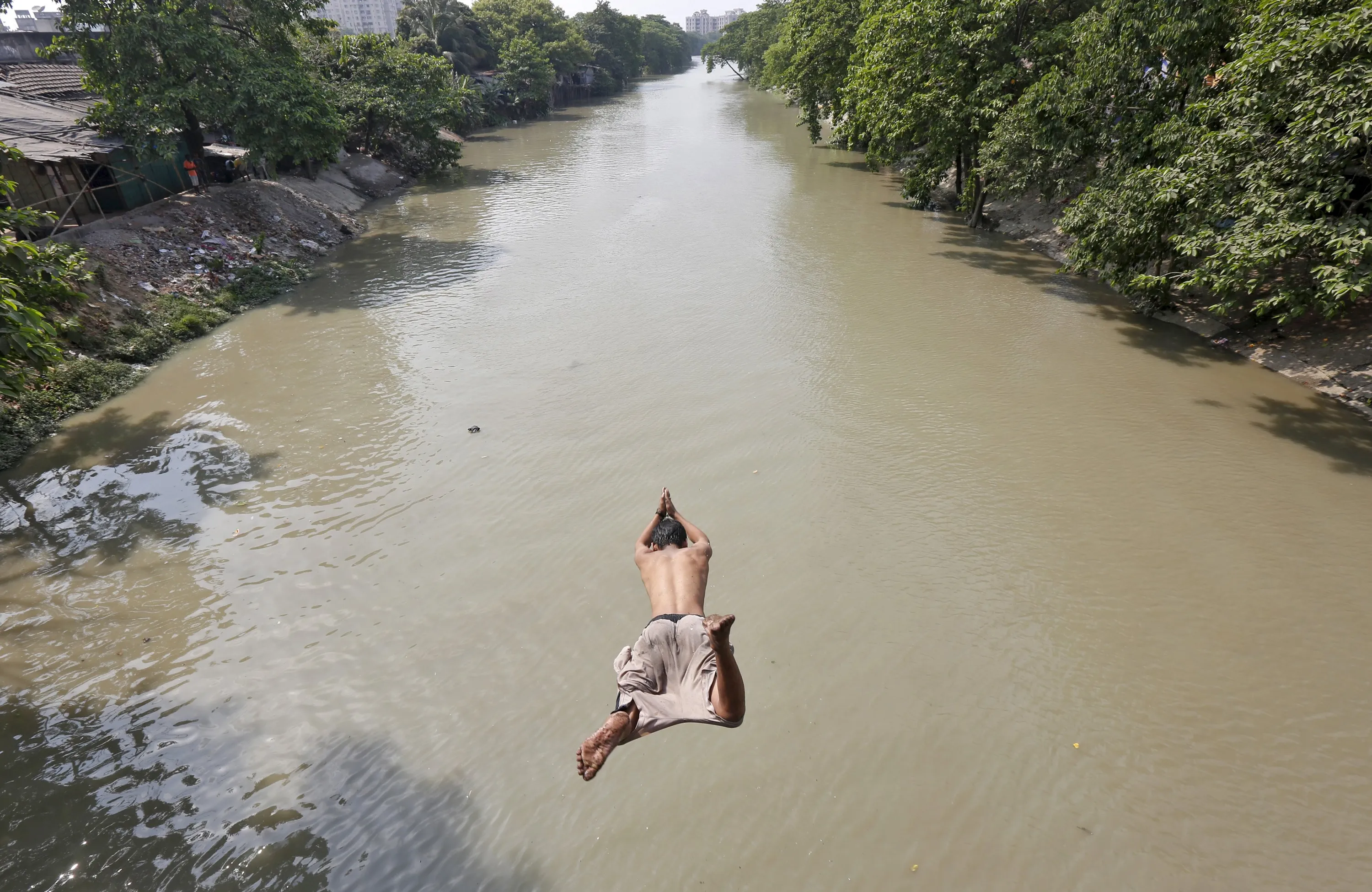 A man jumps into Tolly's Nullah to cool off on a hot day in Kolkata, India, April 25, 2016. (Photo by Rupak De Chowdhuri/Reuters)