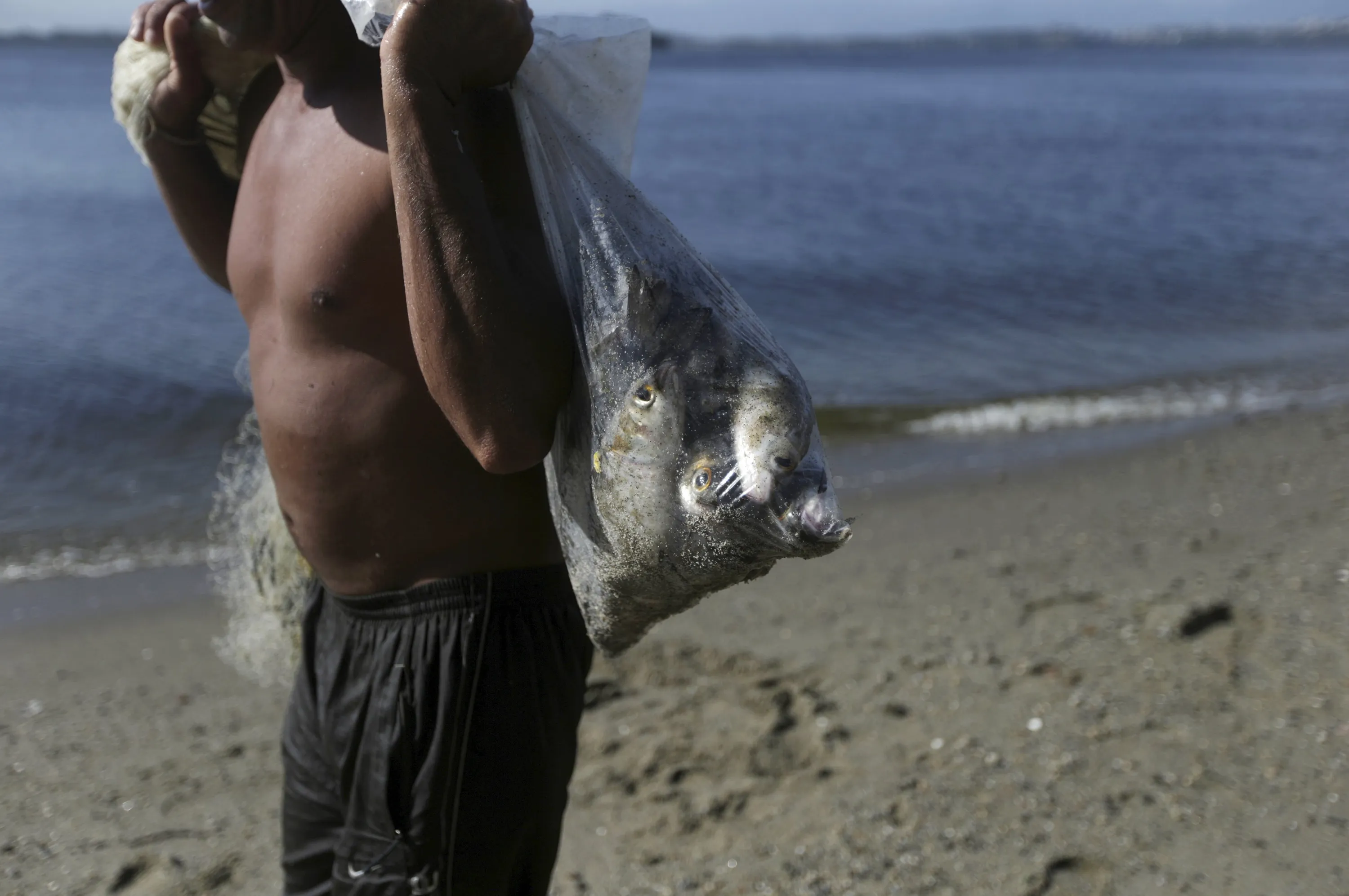 Adriel Oliveira, 35, who works on civil construction and has fished on Guanabara Bay for 16 years, carries a bag of fish in Rio de Janeiro Brazil, January 6, 2016. Few features capture the beauty, or the problems, of one of the world's most dramatic urban landscapes like Guanabara Bay - the finger-like inlet that forms the shoreline and harbor for Rio de Janeiro. The bay, which carves into southeast Brazil from the Atlantic Ocean, literally gave Rio its name when Portuguese mariners mistook it for a “rio”, or “river”. Four centuries later, the bay is preparing to welcome another sort of seafarer – Olympic sailors, who will navigate the bay when the 2016 Rio Olympics kick off in August. (Photo by Ricardo Moraes/Reuters)