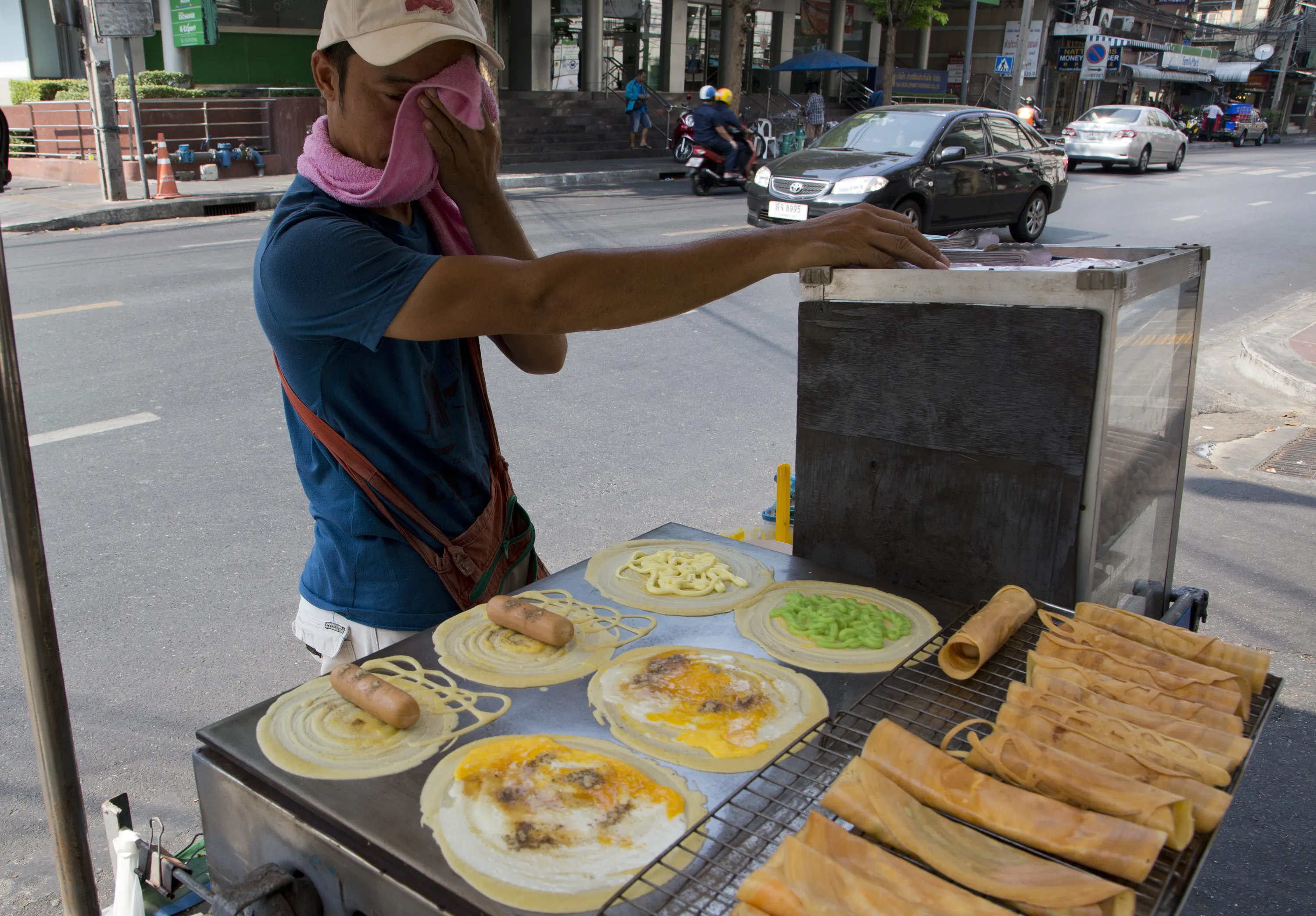 A street vendor wipes the sweat from his face as he cooks food in central Bangkok, Thailand, Wednesday, April 27, 2016. April in Thailand is typically hot and sweaty but this year's scorching weather has set a record for the longest heat wave in at least 65 years. The Department of Disease Control has warned people to beware of food poisoning and other food-related illnesses that typically increase during hot weather when bacteria can thrive on unrefrigerated food. (Photo by Mark Baker/AP Photo)