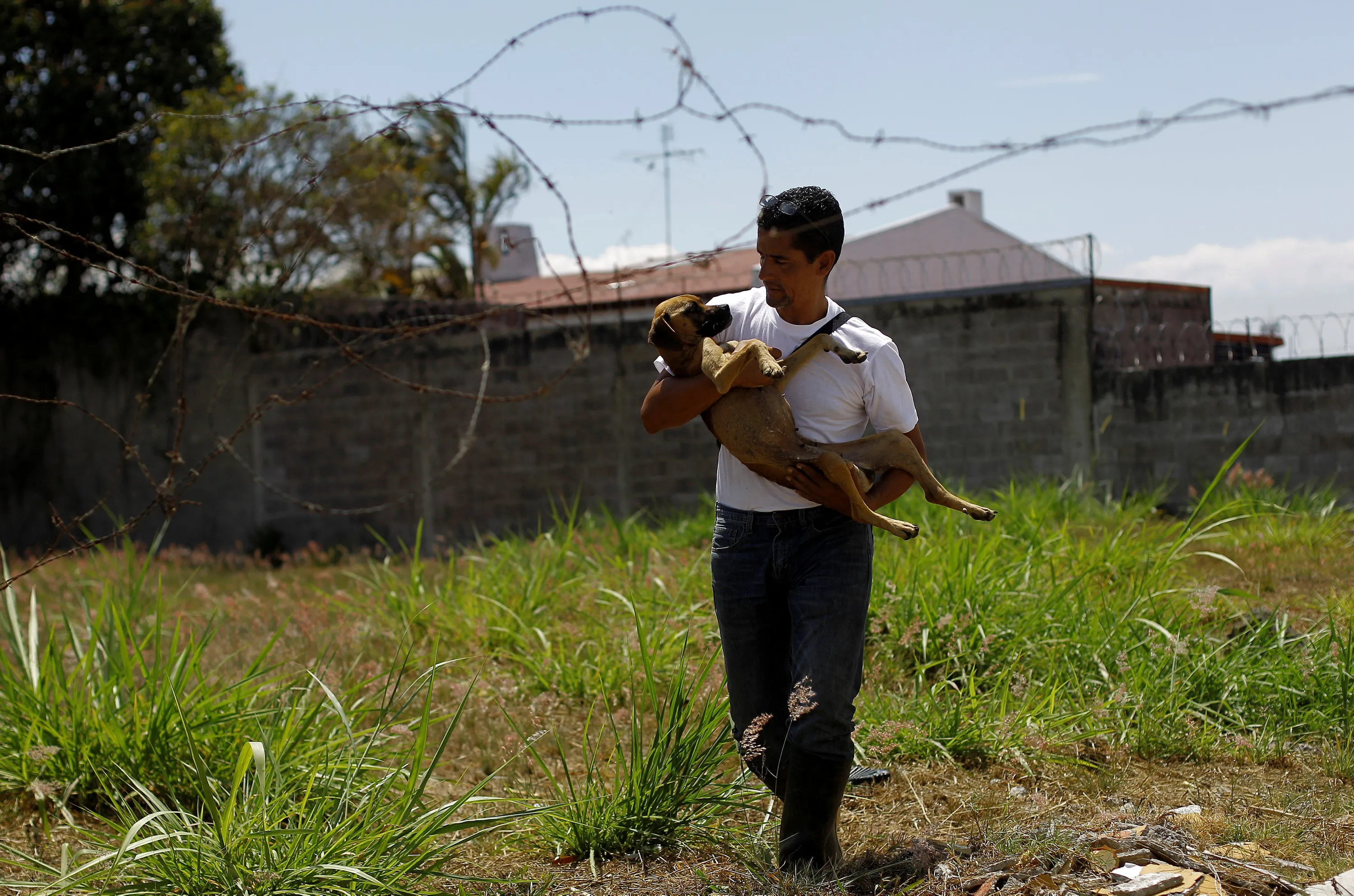Alvaro Saumet rescues a stray dog in San Jose, Costa Rica, April 22, 2016. (Photo by Juan Carlos Ulate/Reuters)