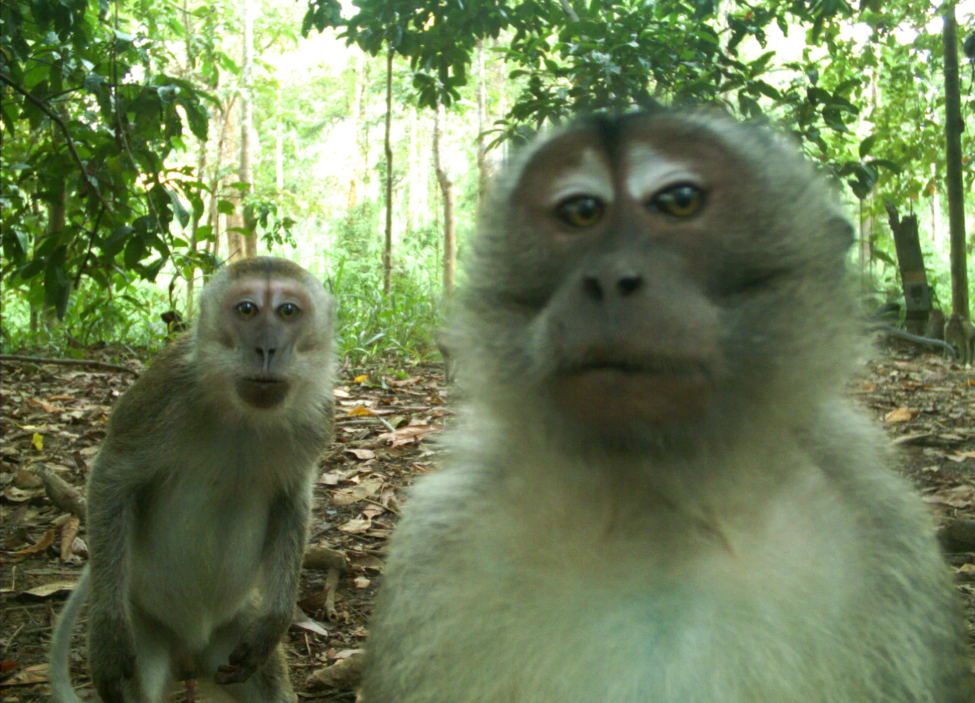 Long-tailed macaques are a common species in south-east Asia and live a bold and curious lifestyle. Although about half of their diet is fruit, they are always on the lookout for a small insect or lizard to pounce on. (Photo by Benoit Goossens/Johns Hopkins University Press)