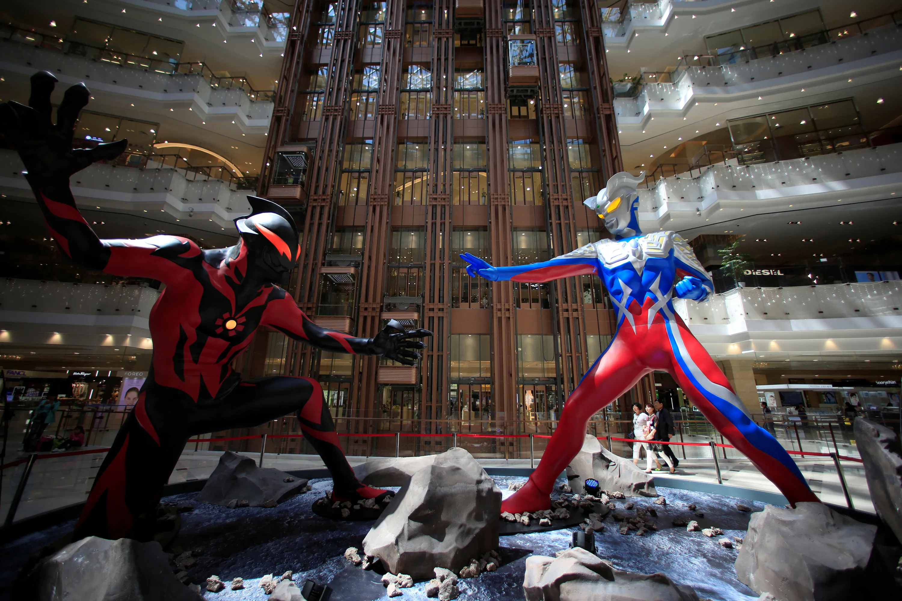 Two five-meter-tall Ultraman models are displayed in a shopping mall in Shanghai, China, May 3, 2016, as part of an exhibition commemorating the 50th anniversary of Ultraman. (Photo by Aly Song/Reuters)