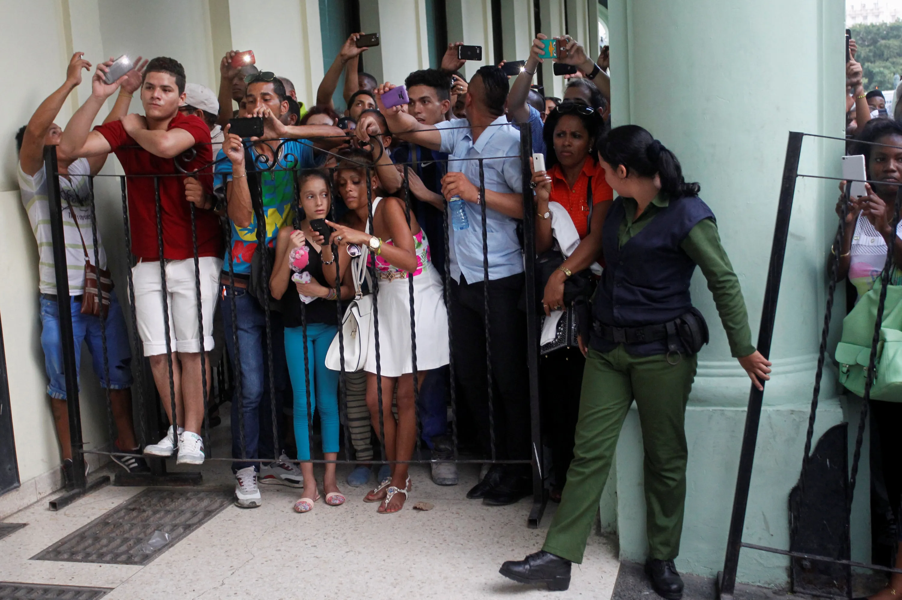 People wait to catch a glimpse of models and celebrities who are in town to attend a fashion show by Chanel, the first major fashion house to send models down the catwalk in Cuba, in Havana, May 3, 2016. (Photo by Reuters/Stringer)