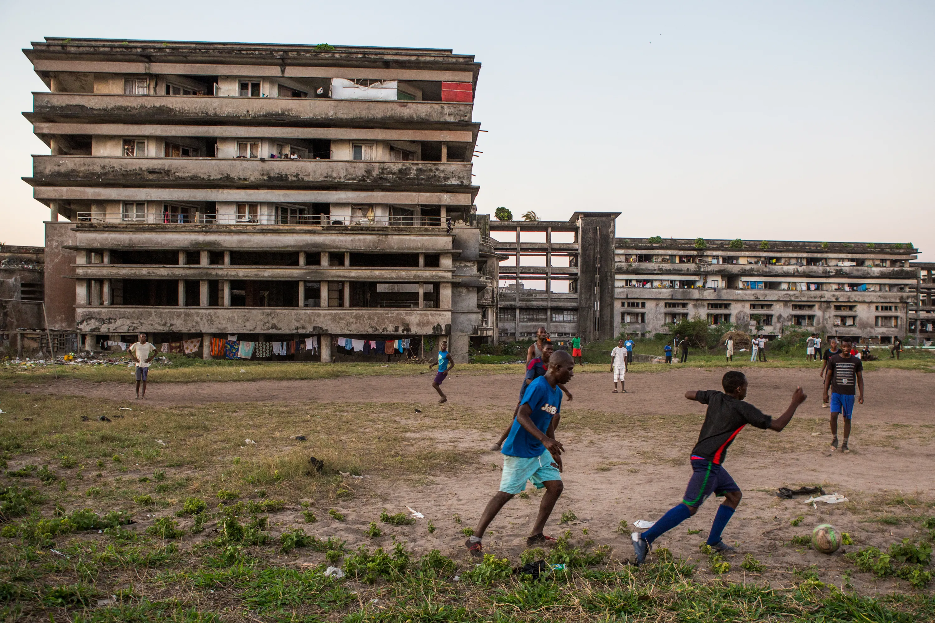 They also organise some sports. Almost every day, people meet each other in the external area to play football. (Photo by Fellipe Abreu/The Guardian)