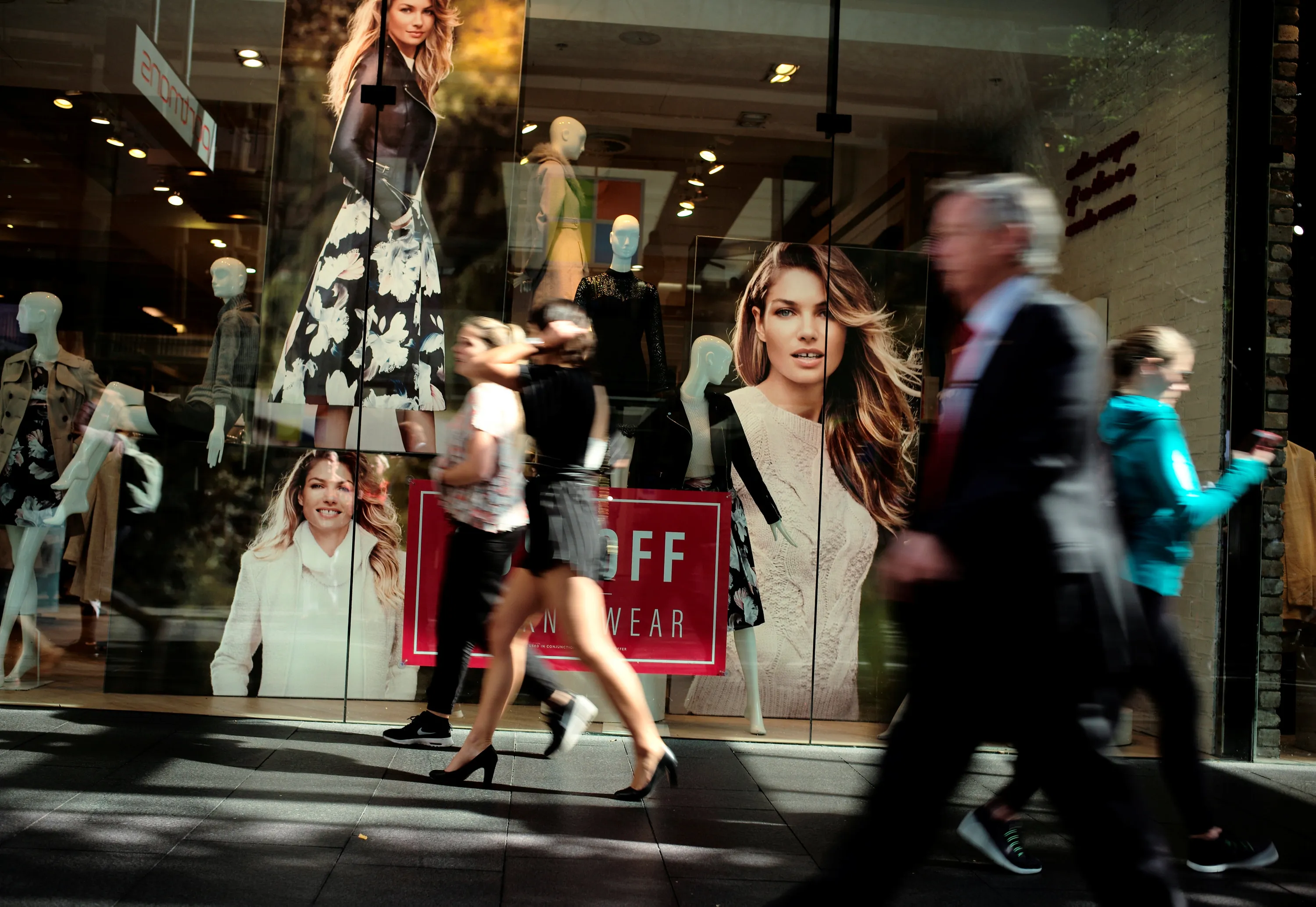 Shoppers walk past a fashion store in Sydney's central retail district, Australia, May 5, 2016. (Photo by Jason Reed/Reuters)