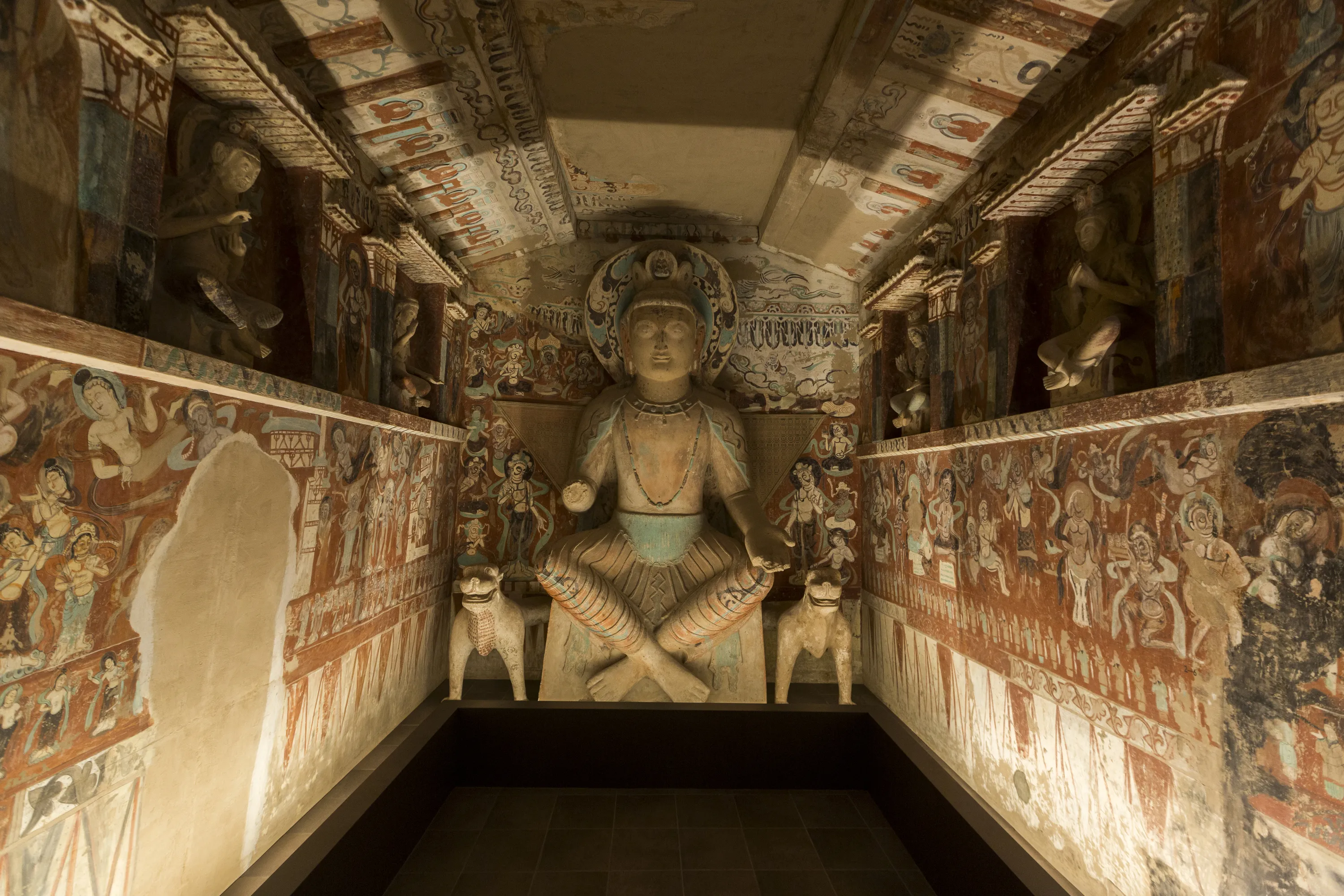 This Wednesday, May 4, 2016, photo shows a full-scale, hand-painted replica of Cave 275 of China's Cave Temples of Dunhuang on display at the J. Paul Getty Museum in Los Angeles. The exhibit “Cave Temples of Dunhuang: Buddhist Art on the Silk Road” opens Saturday, May 7, and runs until September 4, 2016 at the Getty Center. (Photo by Damian Dovarganes/AP Photo)