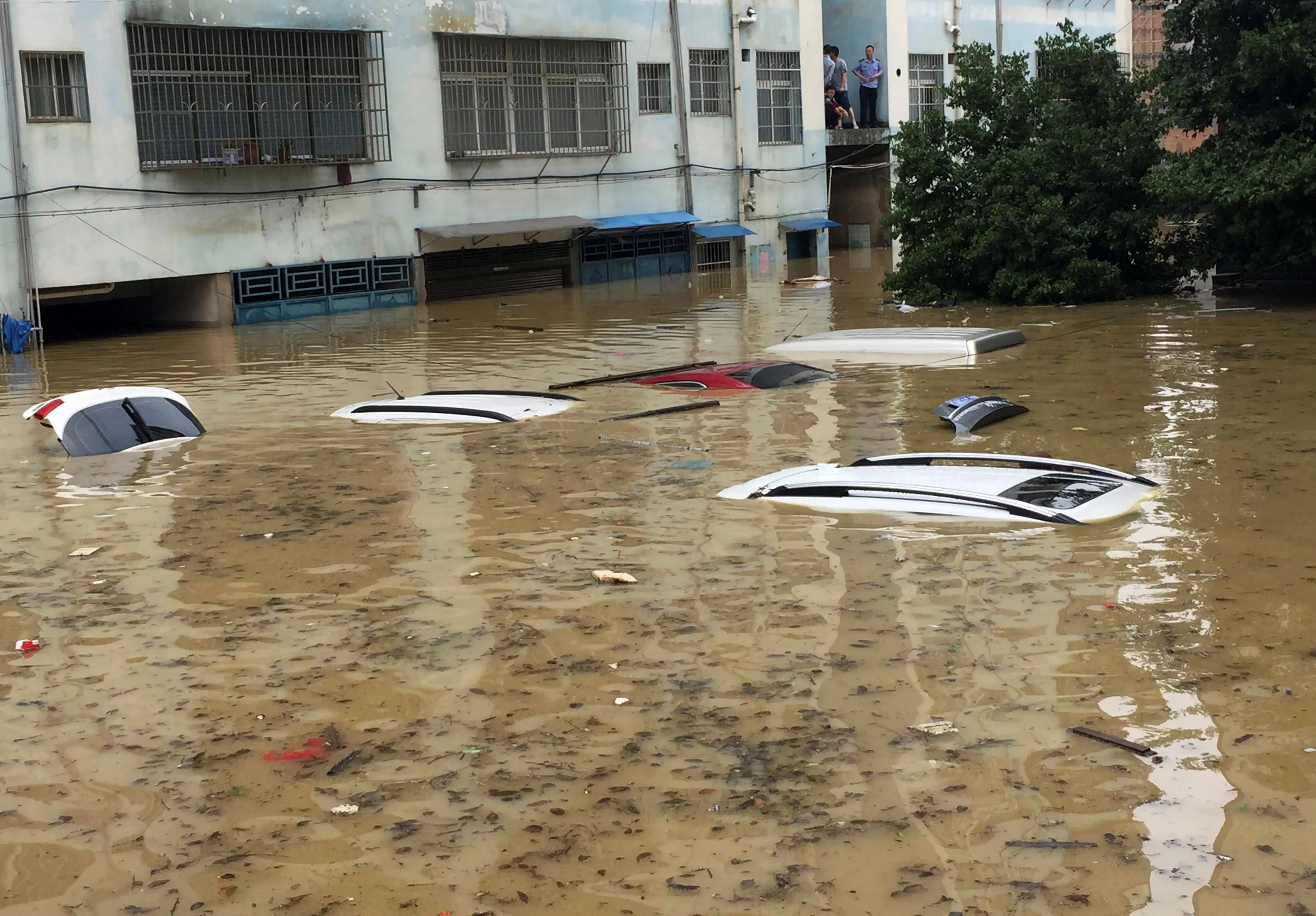 Vehicles are flooded after heavy rainfall in Yongzhou, Hunan Province, China, May 5, 2016. (Photo by Reuters/Stringer)
