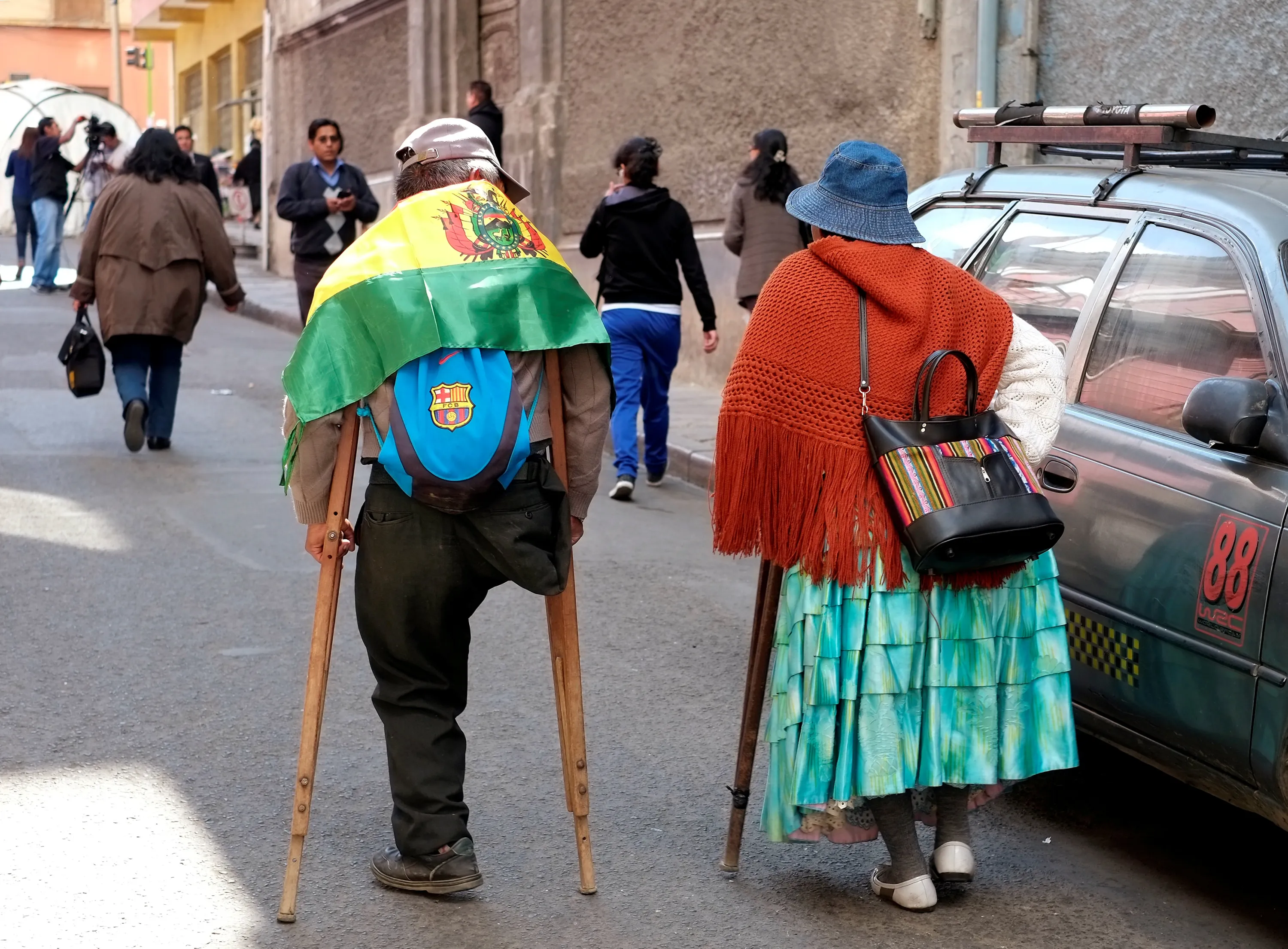 A couple with physical disabilities walk after a rally protest calling on the government to provide a monthly subsidy rather than an annual one, in La Paz, Bolivia, May 5, 2016. (Photo by David Mercado/Reuters)