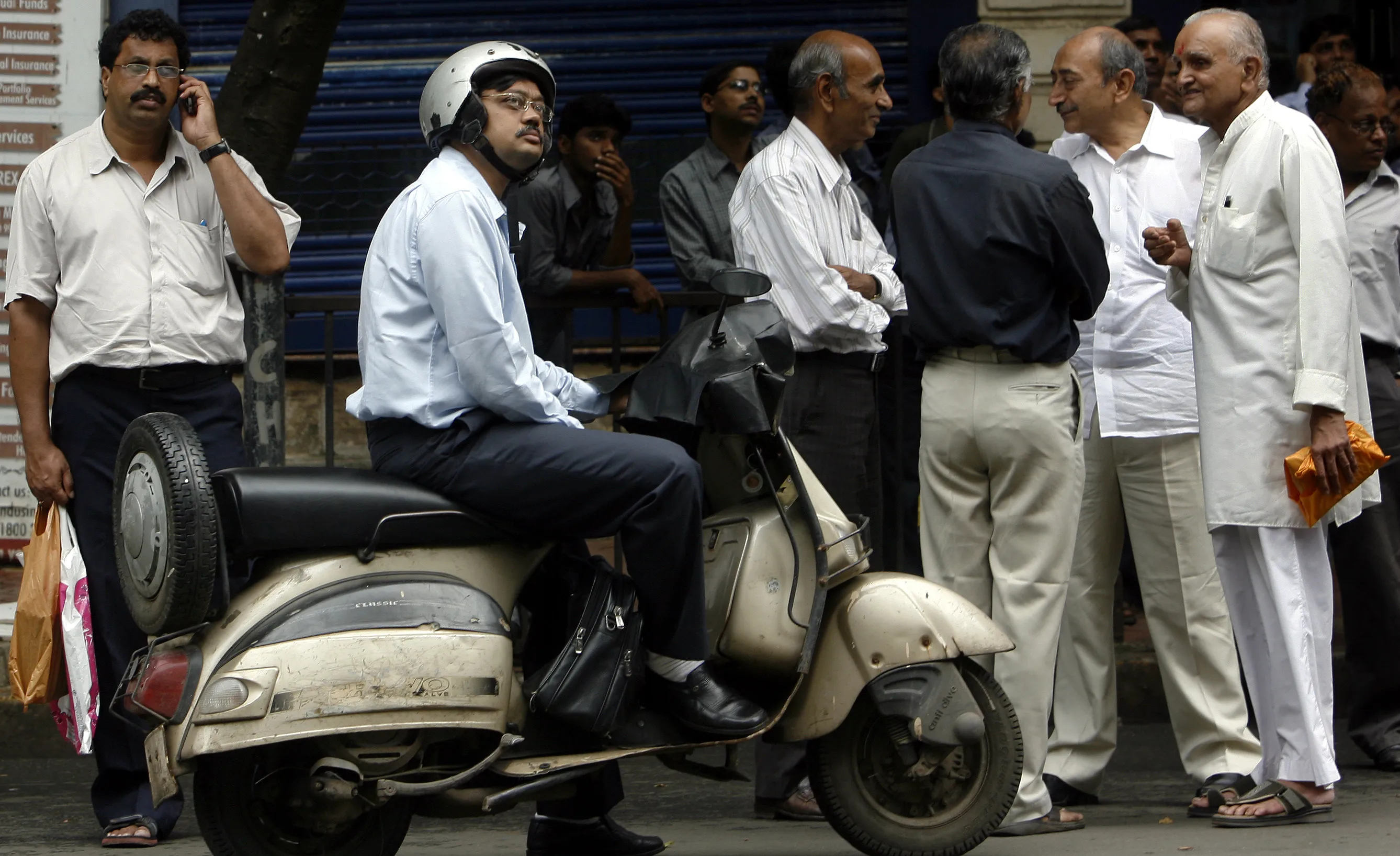 People watch a large screen displaying India's benchmark share index on the facade of the Bombay Stock Exchange (BSE) building in Mumbai September 8, 2008. (Photo by Punit Paranjpe/Reuters)
