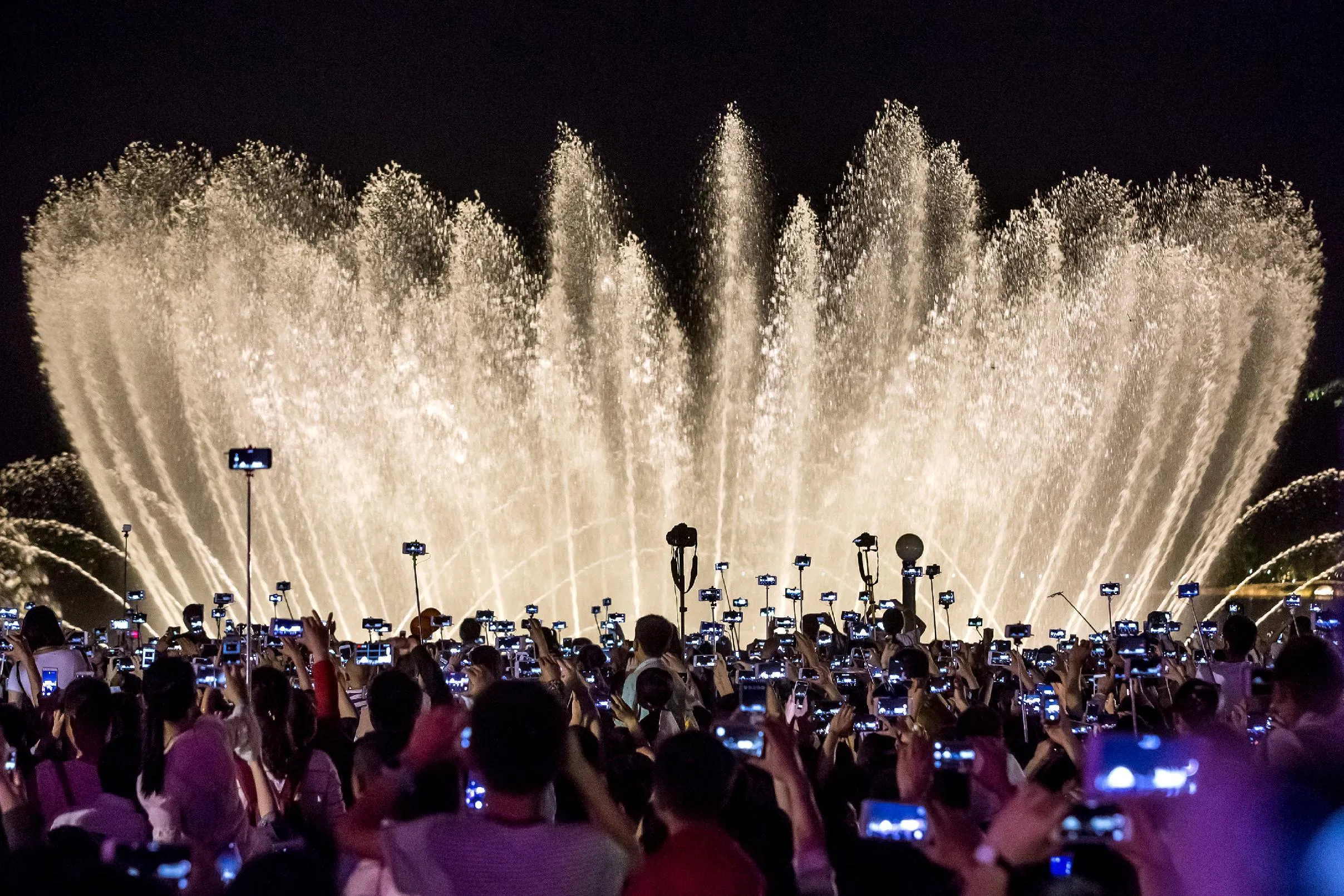 People record a water fountain show with their mobile phones in Hangzhou, Zhejiang province, China May 1, 2016. (Photo by Chance Chan/Reuters)