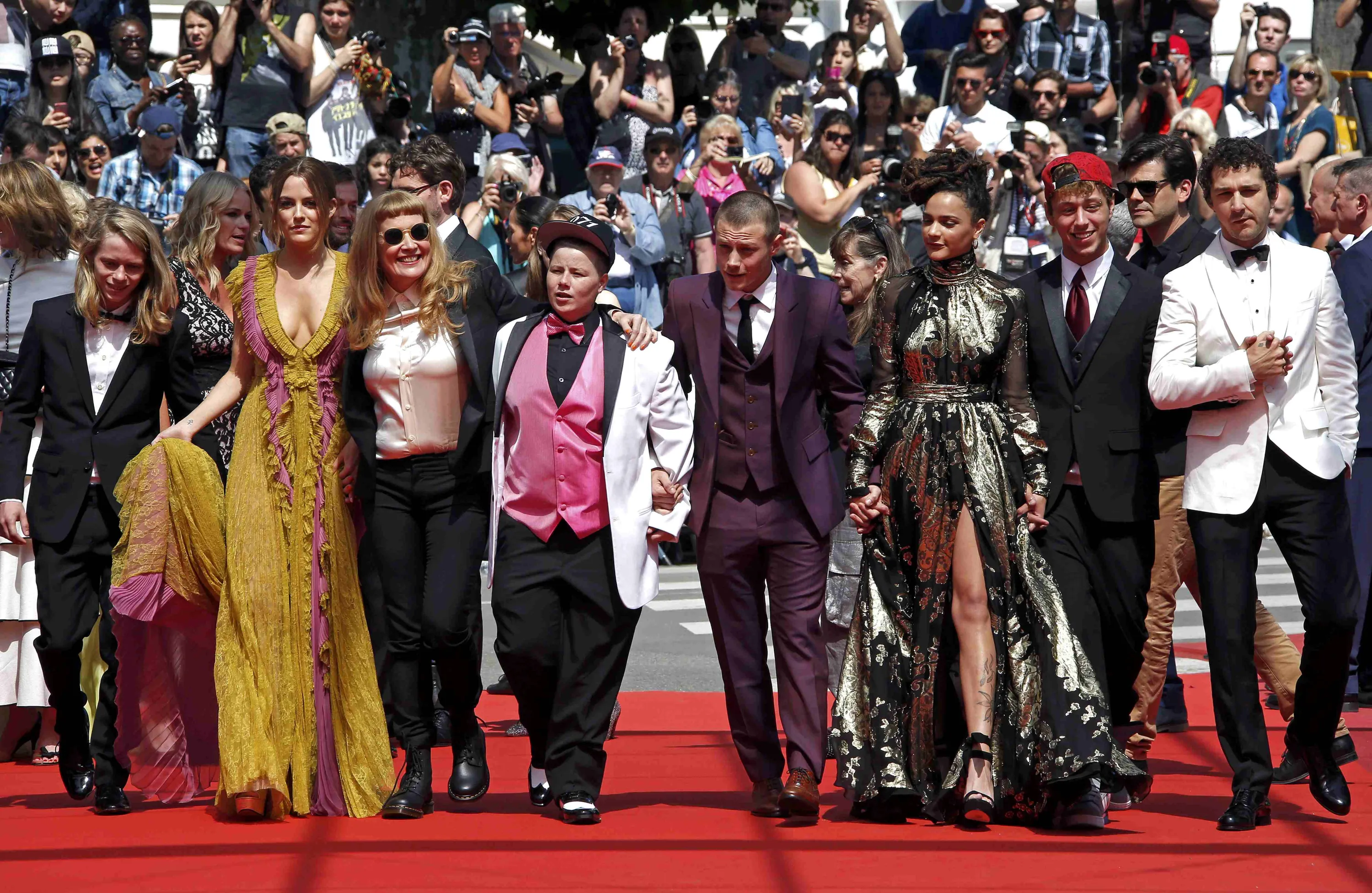 Director Andrea Arnold (3rdL) arrives on the red carpet with cast member Shia LaBeouf (R), Sasha Lane (3rdR), Riley Keough (2ndL), Veronica Ezell, (4thL), Raymond Coalson (2ndR), Isalah Stone (L) and Mccaul Lombardi (4thR) for the screening of the film “American Honey” in competition at the 69th Cannes Film Festival in Cannes, France, May 15, 2016. (Photo by Eric Gaillard/Reuters)
