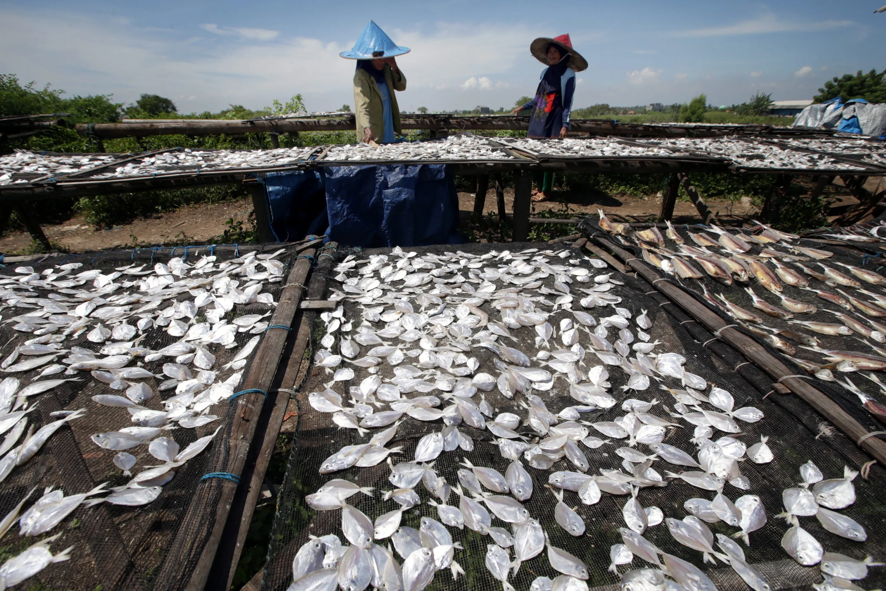 Indonesian women dry salt fish in Tanggerang, Banten, Indonesia, 06 May 2016. According to the Indonesian Central Bank, Indonesia's inflation rate is still relatively high among the ASEAN countries. Indonesian inflation rate recorded at 0.19 percent in March and the year-on-year inflation stand at 4.45 percent, Central Statistics Agency (BPS) said. (Photo by Bagus Indahono/EPA)
