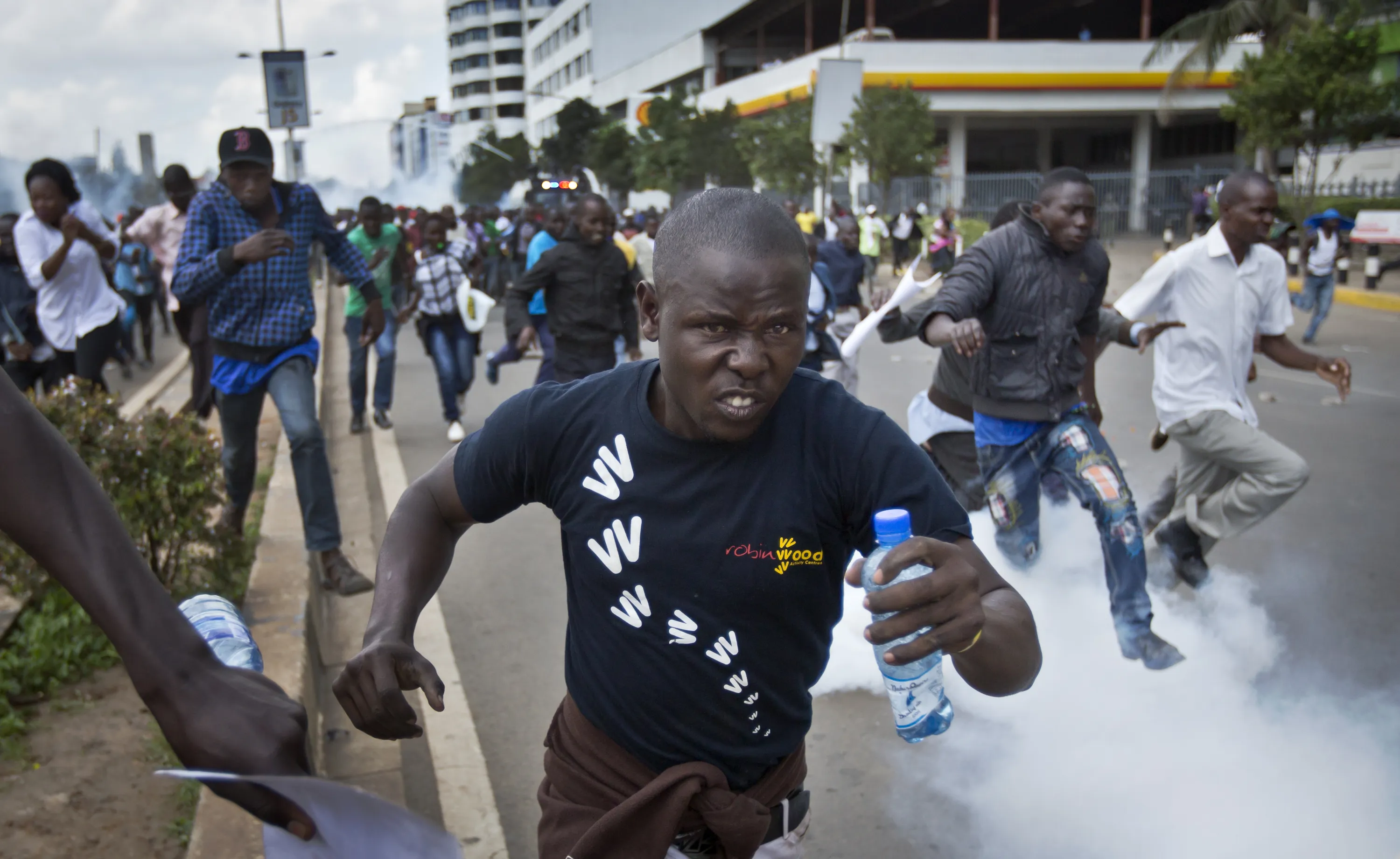 Opposition supporters flee from tear gas grenades fired by riot police, during a protest in downtown Nairobi, Kenya Monday, May 16, 2016. (Photo by Ben Curtis/AP Photo)