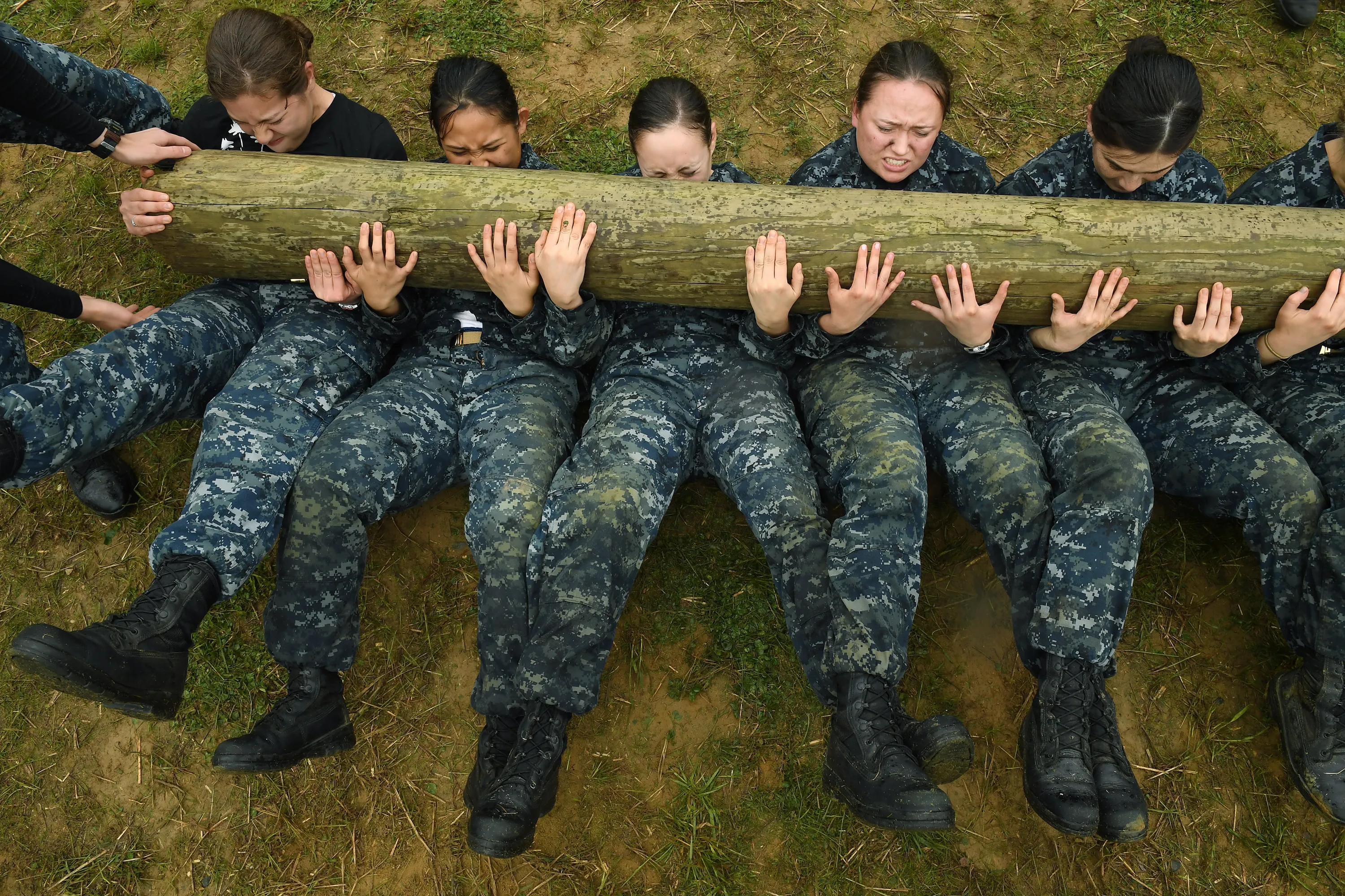United States Naval Academy plebes take part in log pt during Sea Trials at the United States Naval Academy on Tuesday May 17, 2016 in Annapolis, MD. (Photo by Matt McClain/The Washington Post)