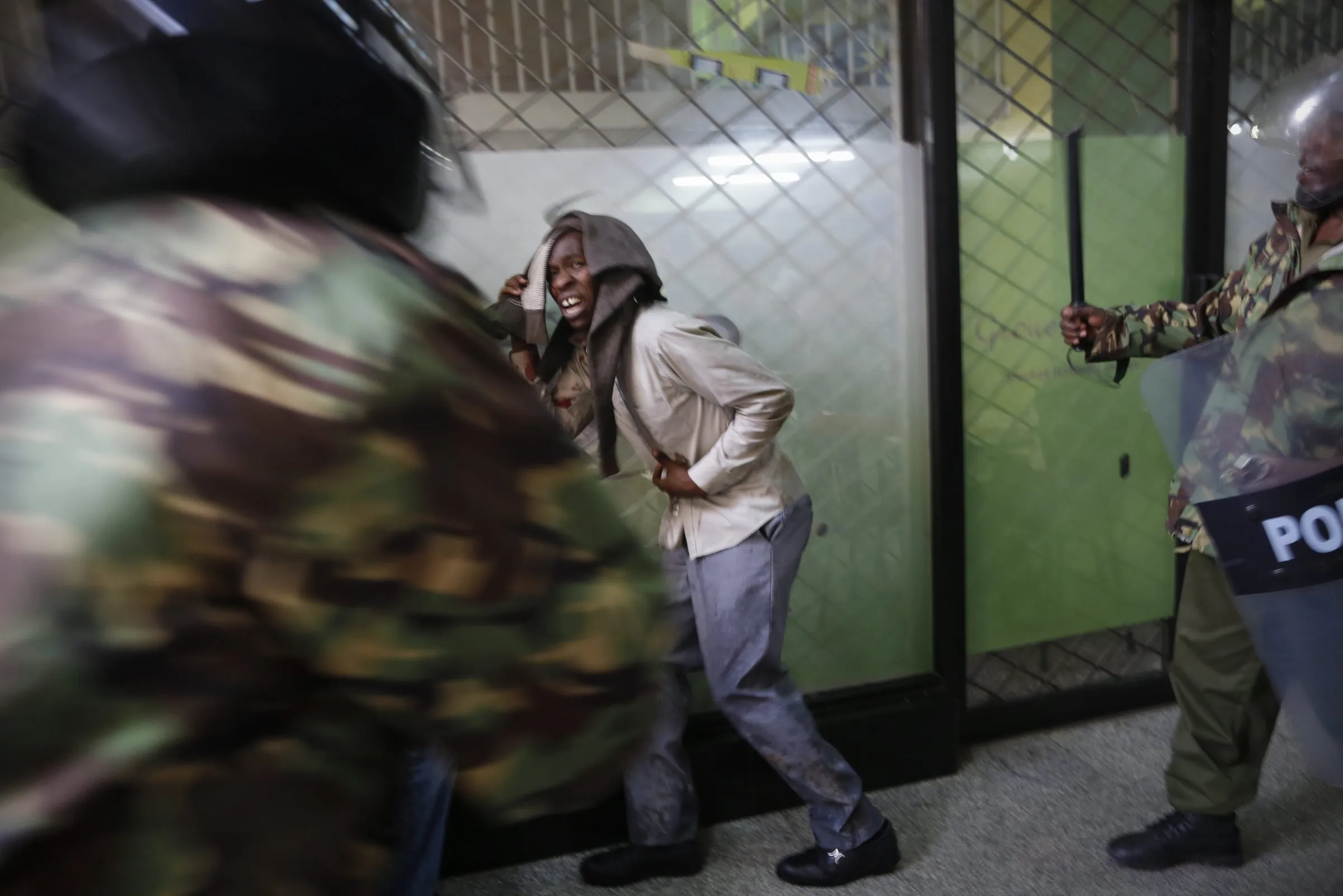 A man reacts as he is beaten by baton-wielding police officers after the supporters of the opposition Coalition for Reforms and Democracy (CORD), led by former Prime Minister Raila Odinga, were dispersed with tear gas during a demonstration against Independent Electoral and Boundaries Commission (IEBC) in downtown Nairobi, Kenya, 16 May 2016. Opposition supporters staged a protest two weeks in a row against the country's electoral body in an attempt to push for the reforms ahead of the next year's general elections. (Photo by Dai Kurokawa/EPA)