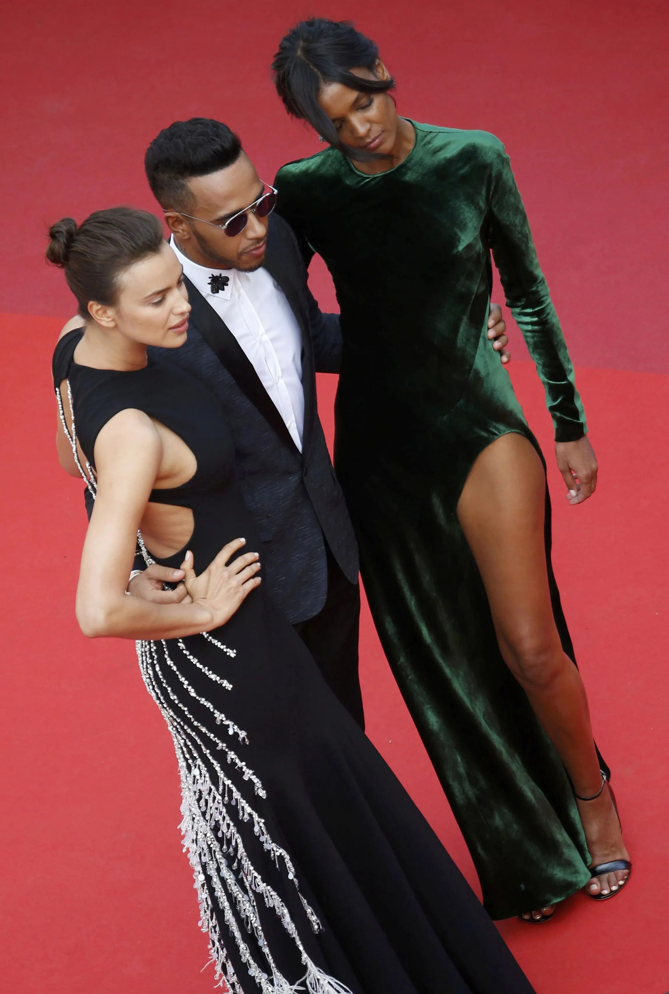 Formula One driver Lewis Hamilton of Britain (C) poses on the red carpet as she arrives for the screening of the film “La fille inconnue” (The Unknown Girl) in competition at the 69th Cannes Film Festival in Cannes, France, May 18, 2016. (Photo by Regis Duvignau/Reuters)