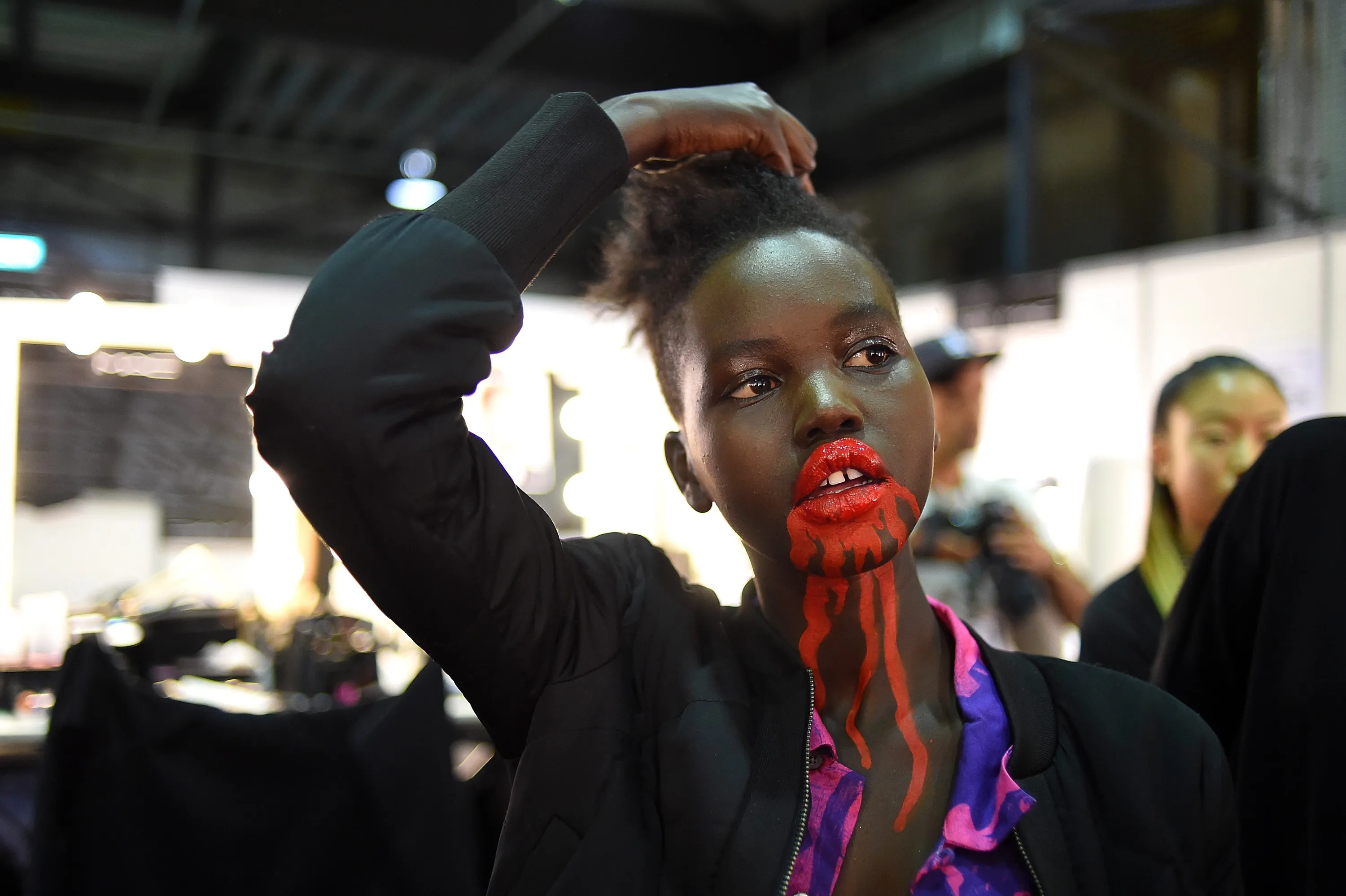A model is prepared backstage for the show of Australian label Discount Universe during the Mercedes-Benz Fashion Week Australia in Sydney, Australia, 18 May 2016. The show runs from 15 to 20 May. (Photo by Tracey Nearmy/EPA)