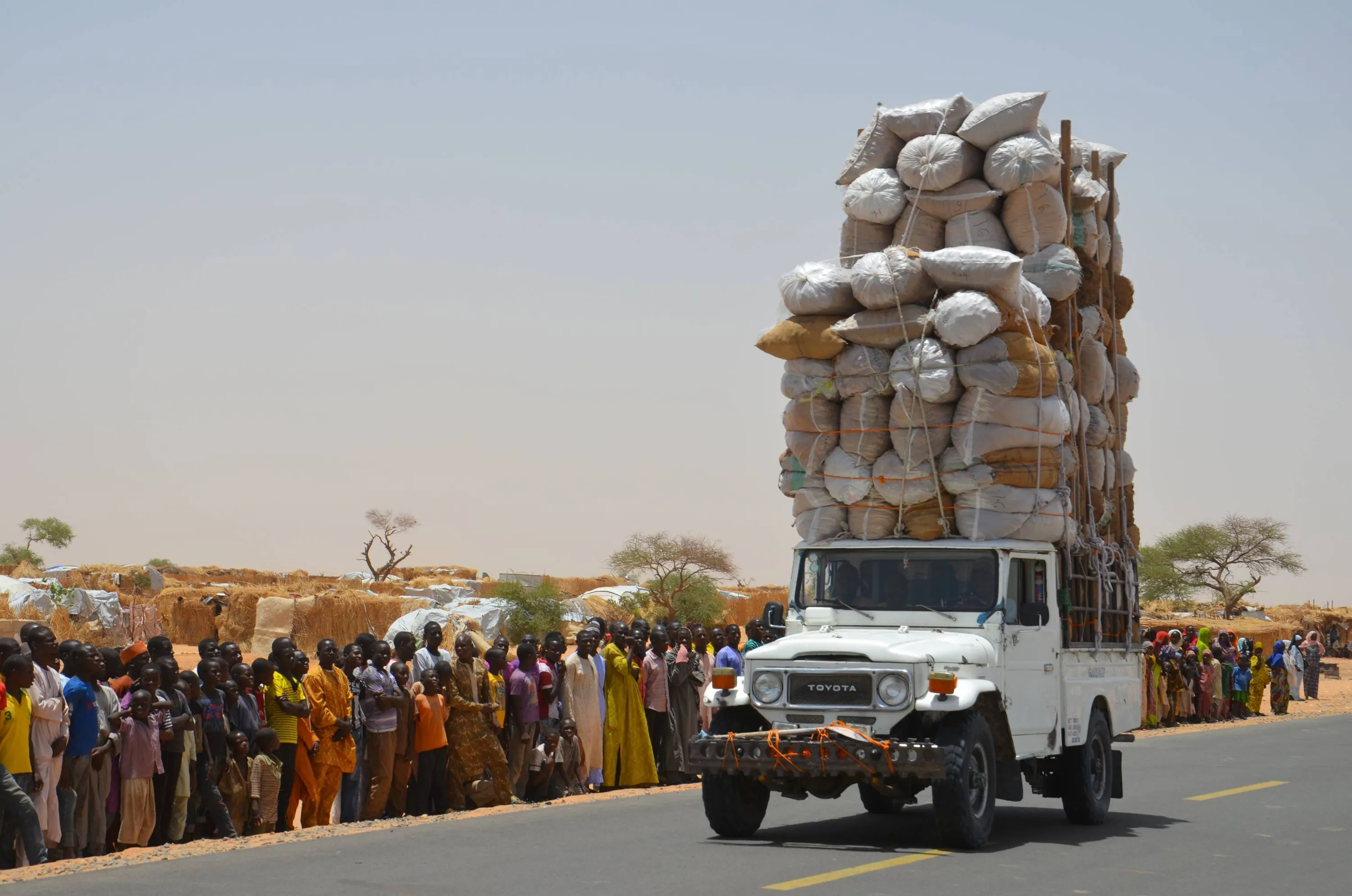 An overloaded car travels through the Assaga refugee camp in Diffa on May 17, 2016, close to the Niger-Nigeria border. Chief of Humanitarian Operations of the UN, Stephen O'Brien, vowed on May 17 to raise funds at the next World Humanitarian Summit for “significant” help to the more than 240,000 refugees displaced by Boko Haram in camps in south-east Niger. (Photo by Boureima Hama/AFP Photo)