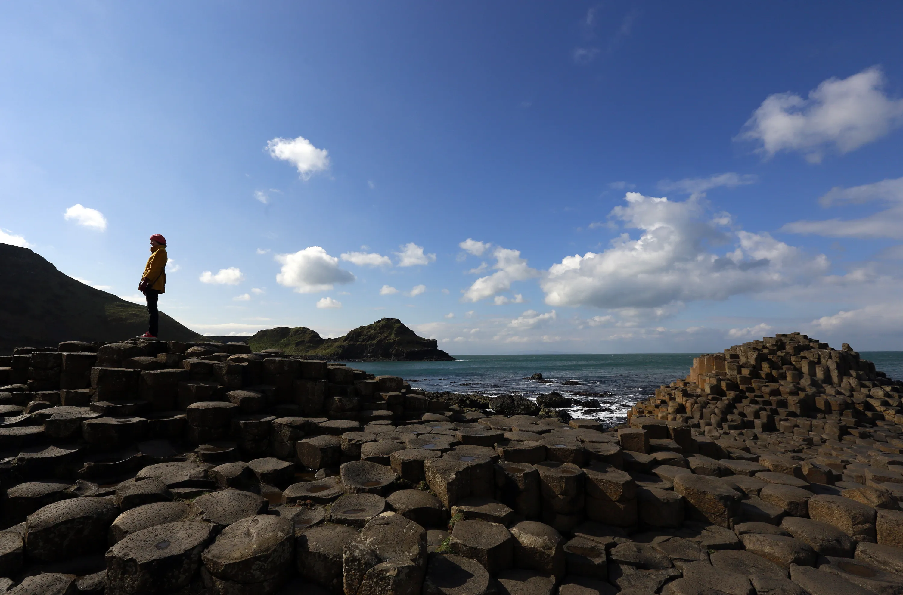 A woman poses for a picture on the rocks at the Giant's Causeway situated on the north coast of Northern Ireland. March 27, 2014. (Photo by Cathal McNaughton/Reuters)