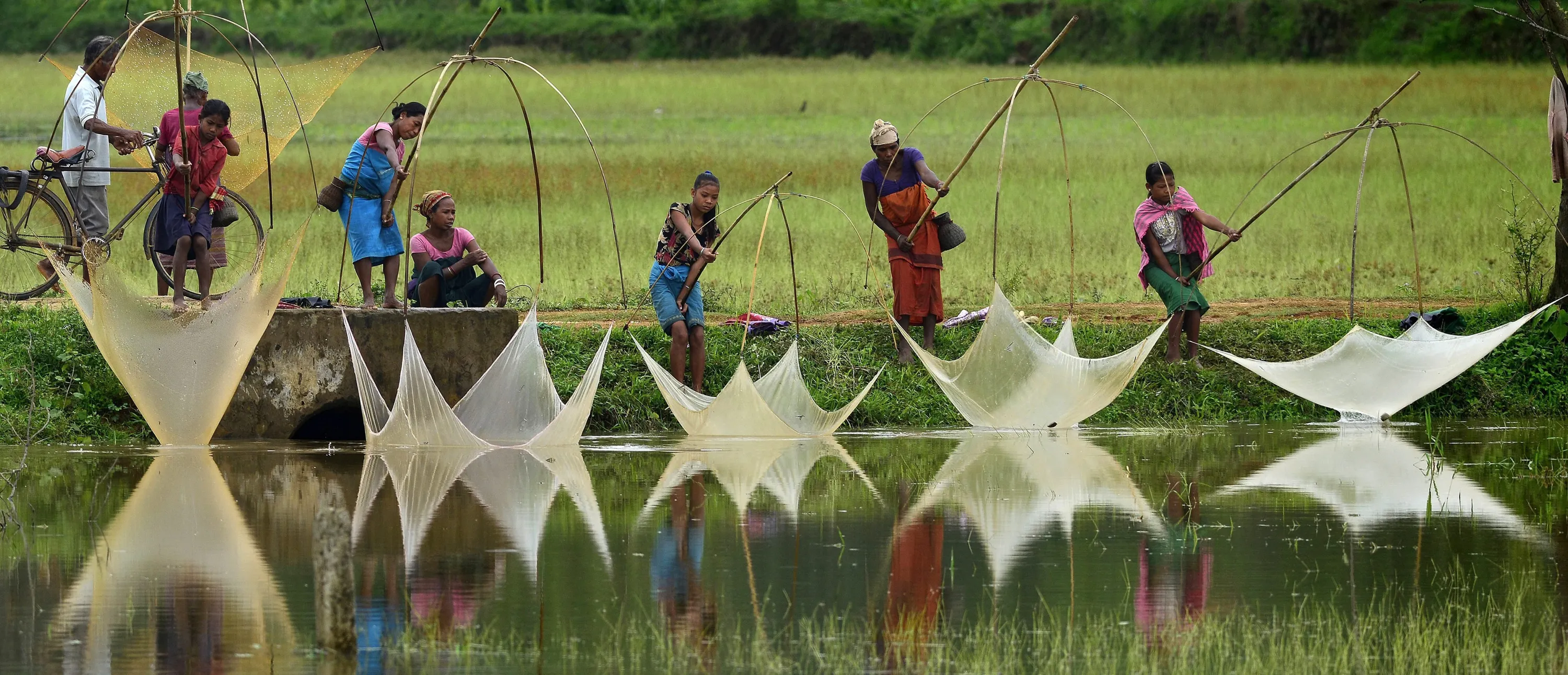 Indian villagers catch fish in an agricultural field which is inundated by rain waters in Goalpara district of Assam state, India, 15 May 2016. Continuous pre-monsoon rain has submerged large scale of low lying areas, including agricultural land in many parts of Assam state during past couple of days. (Photo by EPA/Stringer)