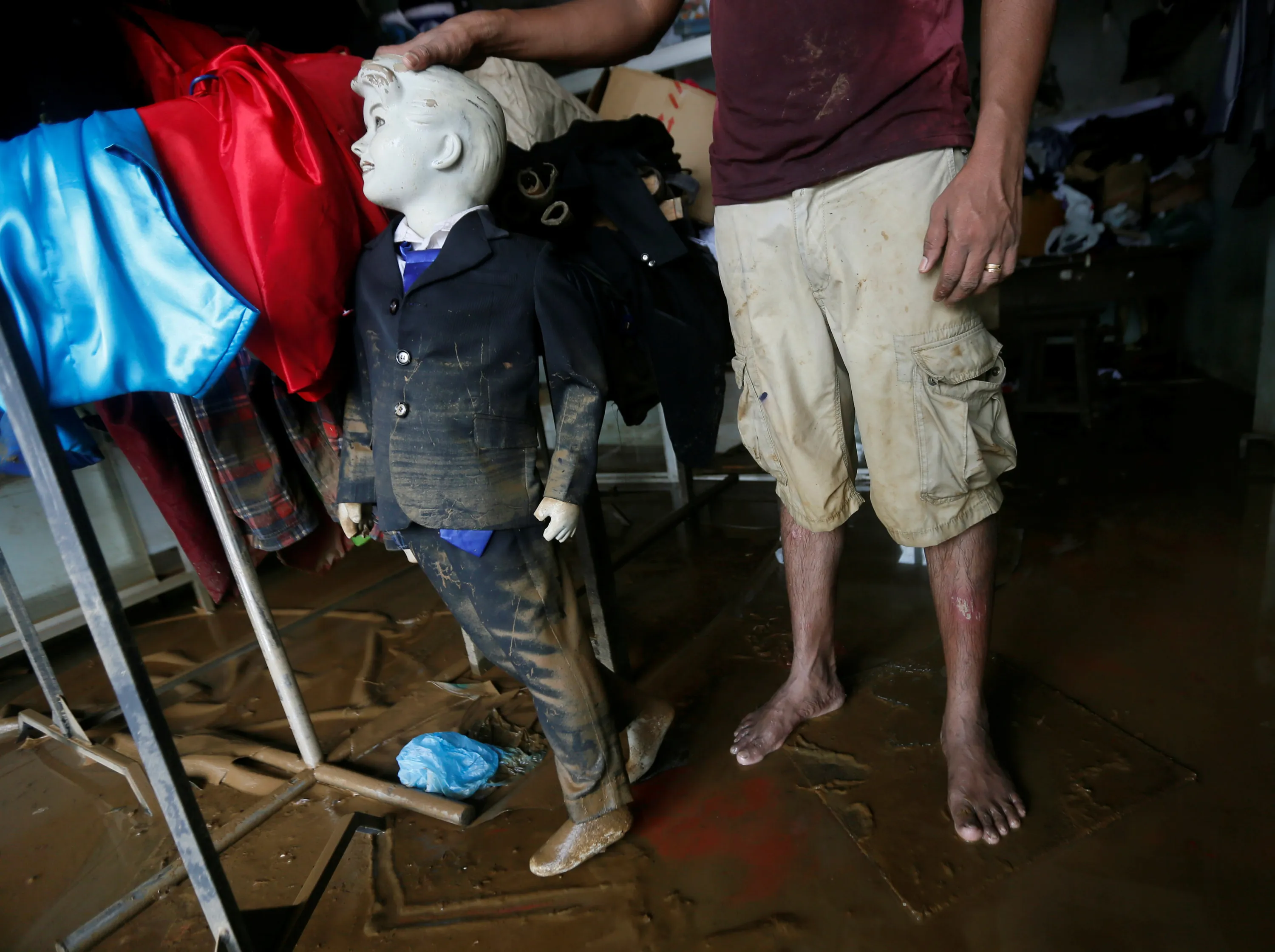 A man holds a muddied mannequin inside his tailoring shop, which was affected by floods, in Biyagama, Sri Lanka May 22, 2016. (Photo by Dinuka Liyanawatte/Reuters)