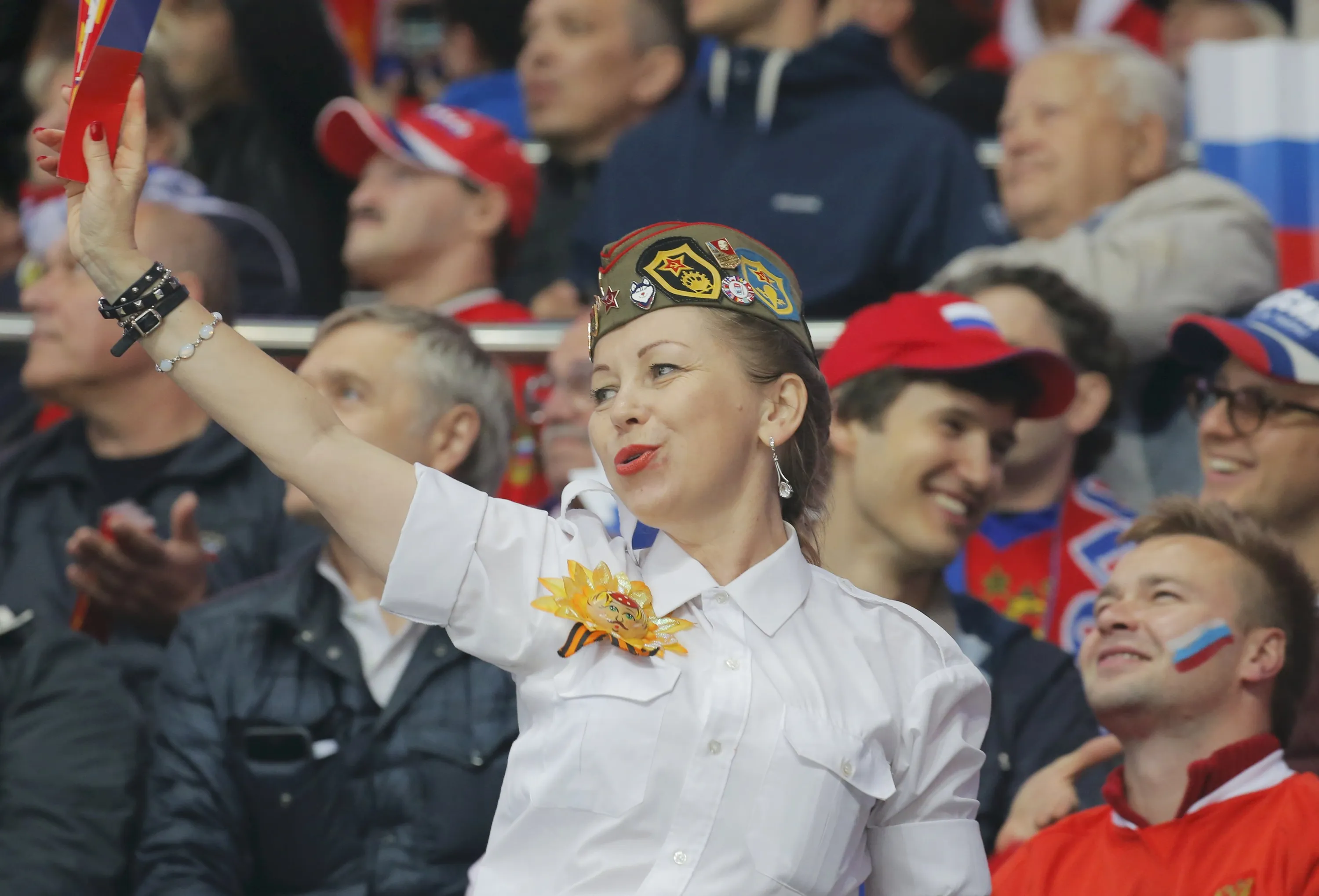 Ice Hockey, 2016 IIHF World Championship, Semi-final, Finland vs Russia, Moscow, Russia on May 21, 2016. A Russian fan supports her team during the match. (Photo by Maxim Shemetov/Reuters)