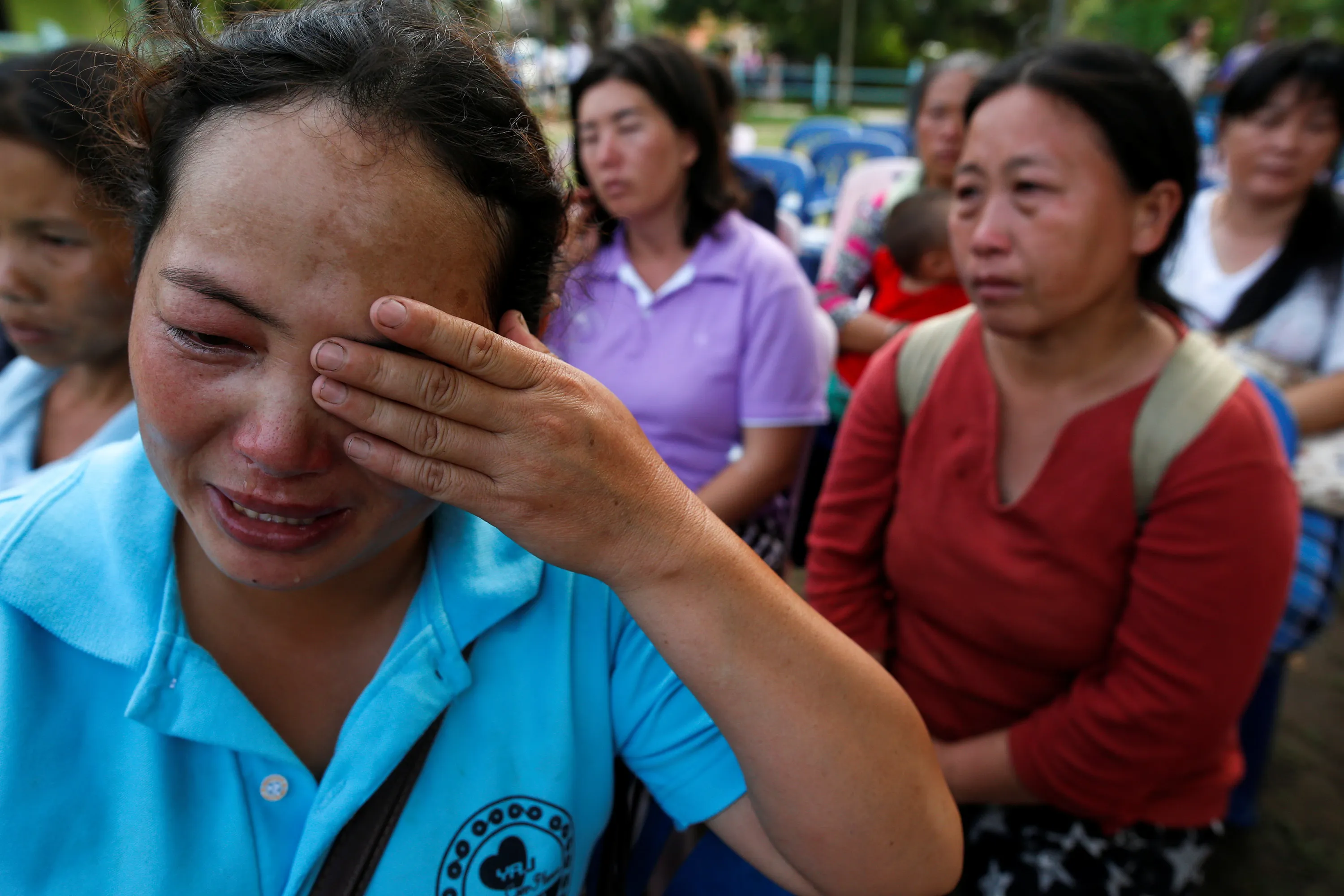 Malawian Saw-wa, 33, (L) who lost her daughter, cries near a burnt building at the Pitakkiat Wittaya School in the northern province of Chiang Rai, Thailand, May 23, 2016. (Photo by Athit Perawongmetha/Reuters)