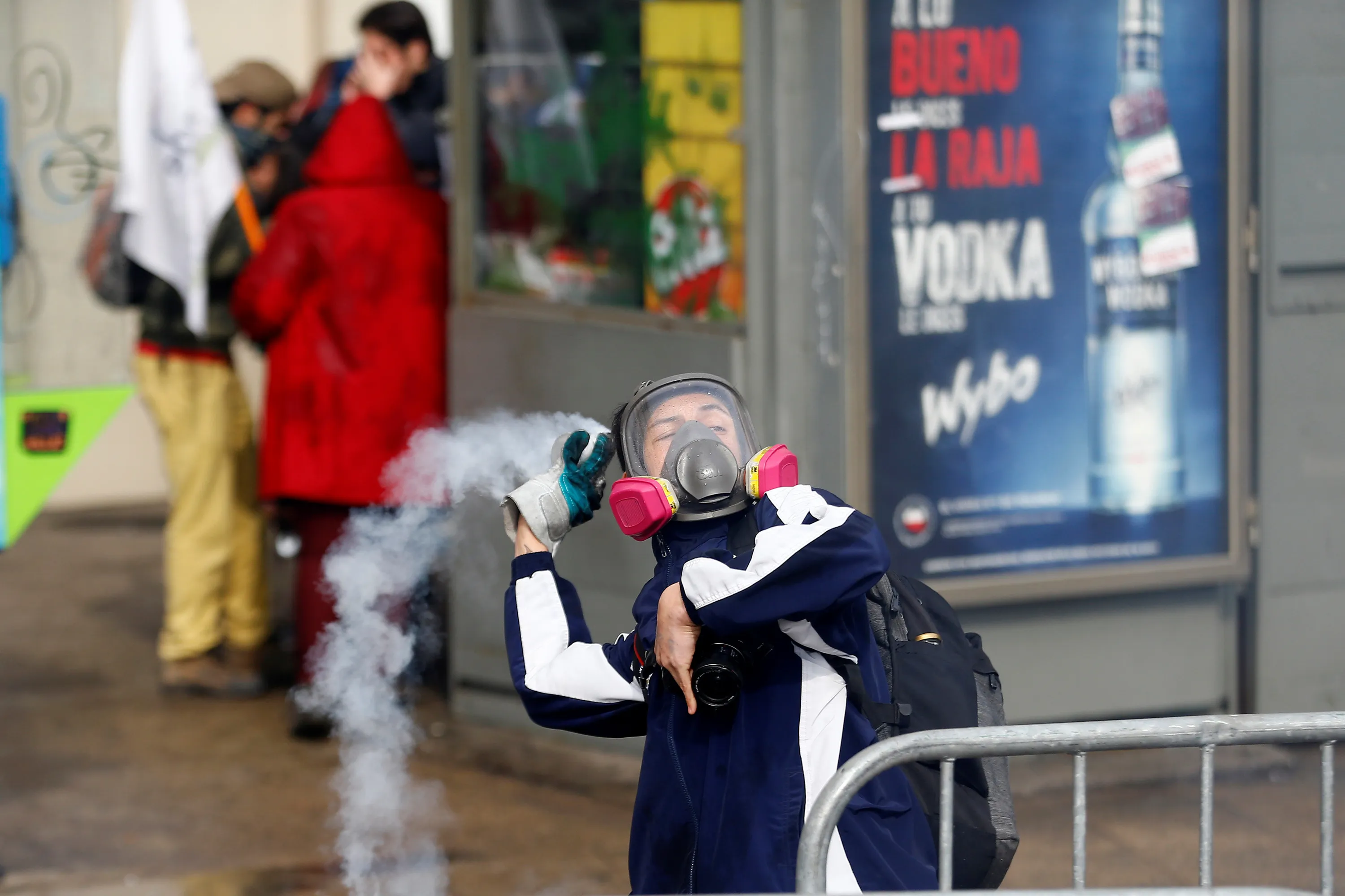 A demonstrator throws a tear gas canister during an unauthorized march called by secondary students to protest against government education reforms in Santiago, Chile, May 26, 2016. (Photo by Ivan Alvarado/Reuters)