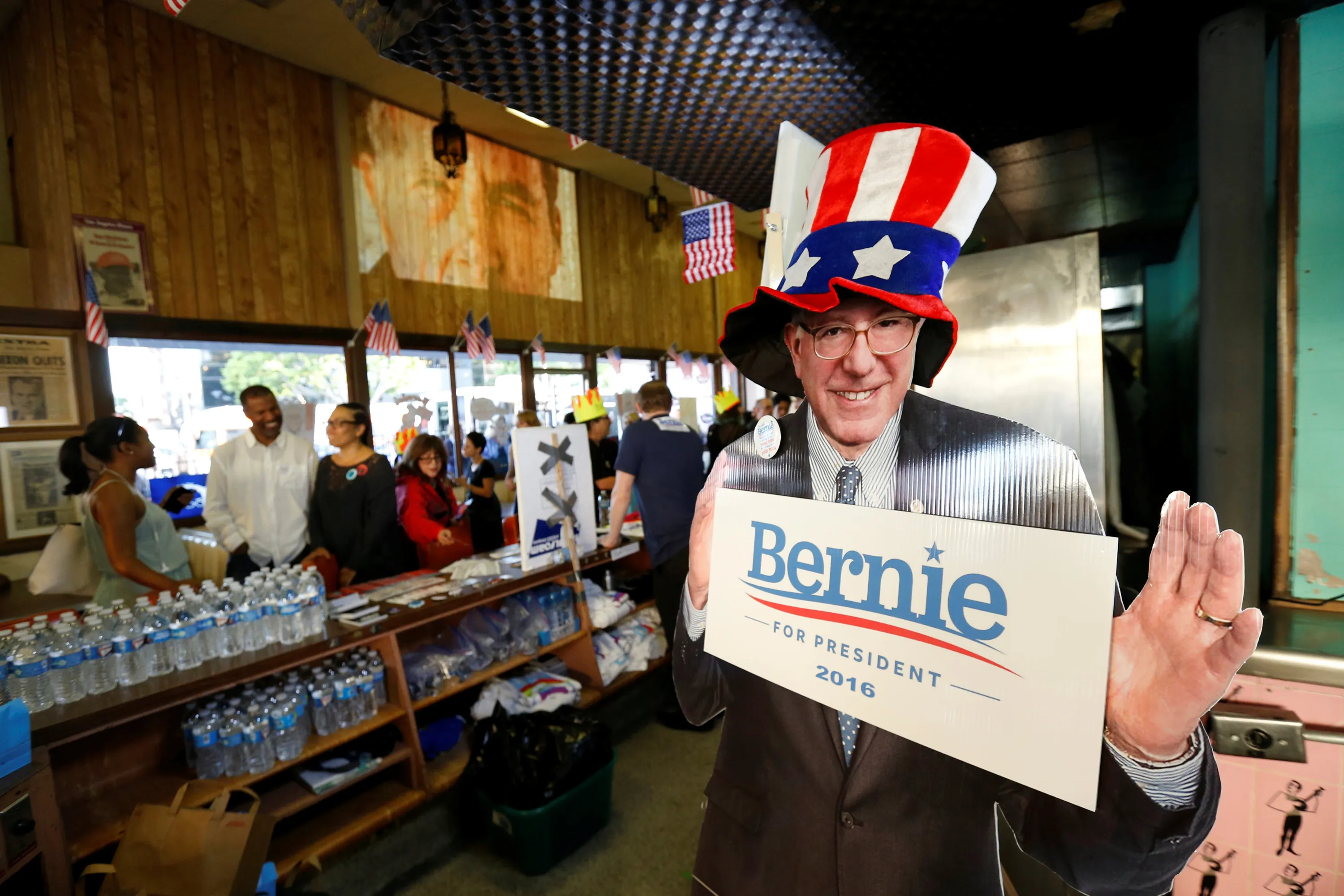 A cardboard depicting Democratic U.S. presidential candidate Bernie Sanders inside Johnie's Coffee Shop, which has been closed since 2000, during a one night only re-opening for a rally in favor of Democratic U.S. presidential candidate Bernie Sanders in Los Angeles, U.S., May 26, 2016. (Photo by Mario Anzuoni/Reuters)