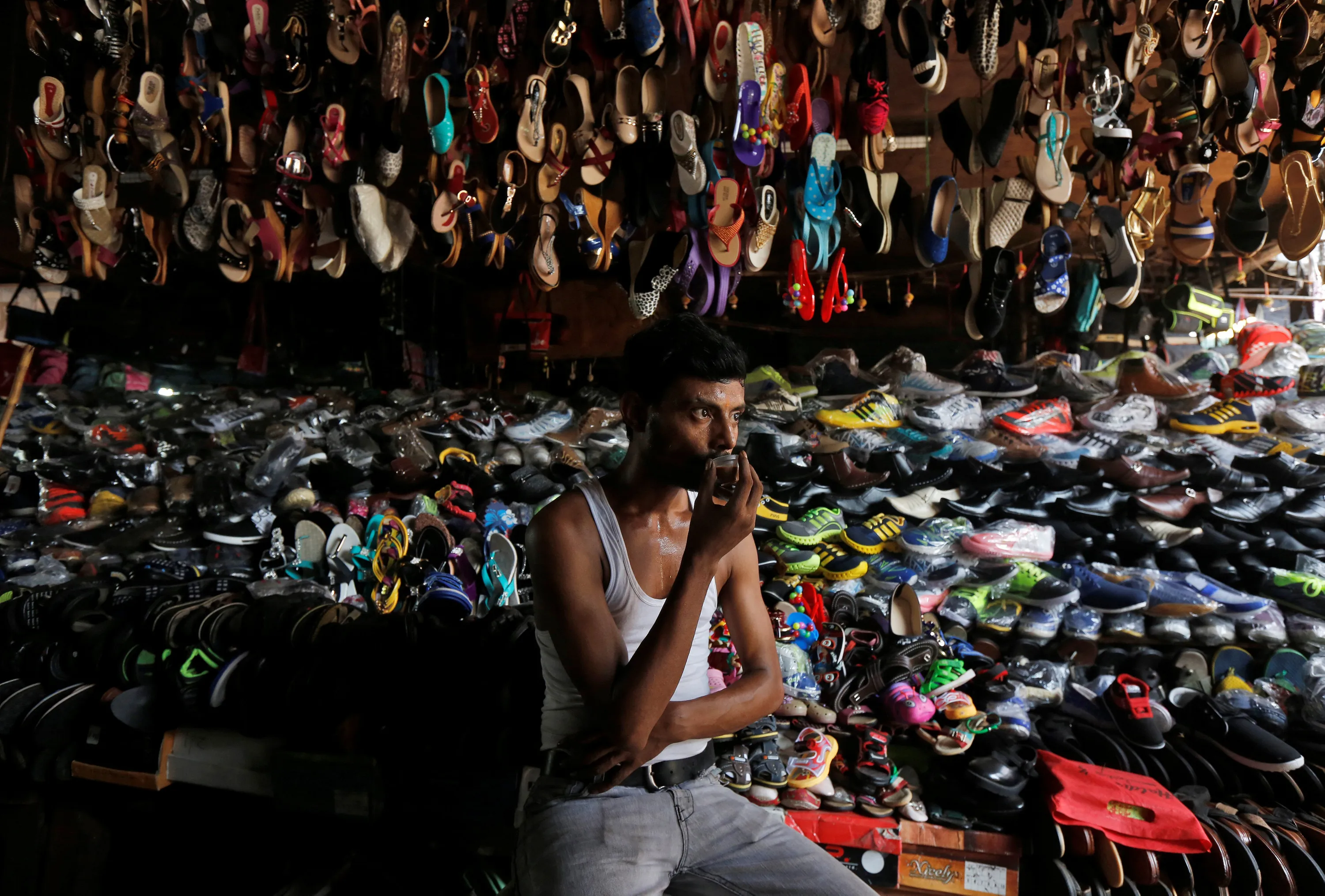 A shopkeeper drinks tea as he waits for customers at his roadside footwear stall in Kolkata, India May 30, 2016. (Photo by Rupak De Chowdhuri/Reuters)