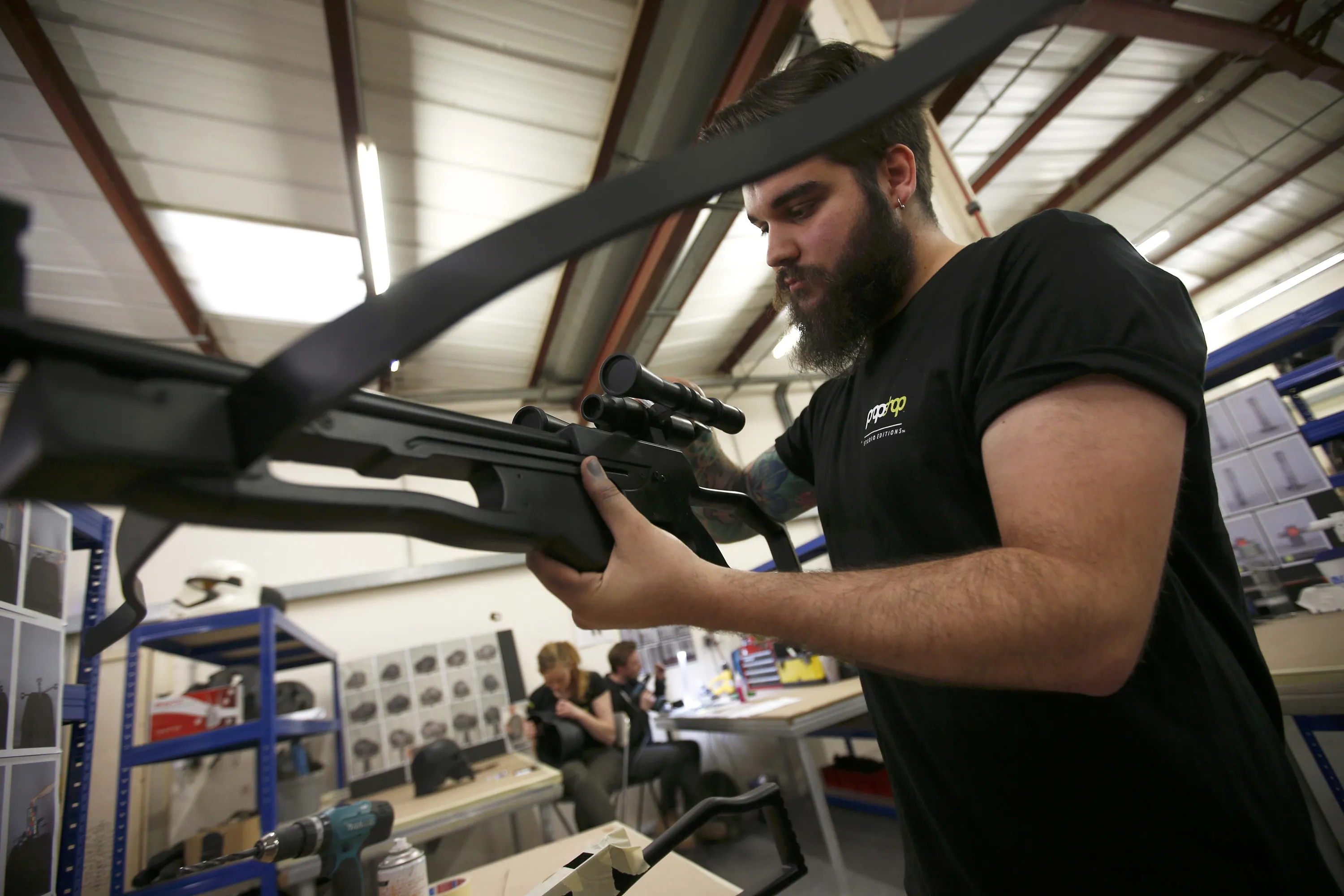 A technician adds finishing touches to a replica of Chewbacca's Bowcaster from “Star Wars: The Force Awakens”, in the Propshop headquarters at Pinewood Studios near London, Britain May 25, 2016. (Photo by Peter Nicholls/Reuters)