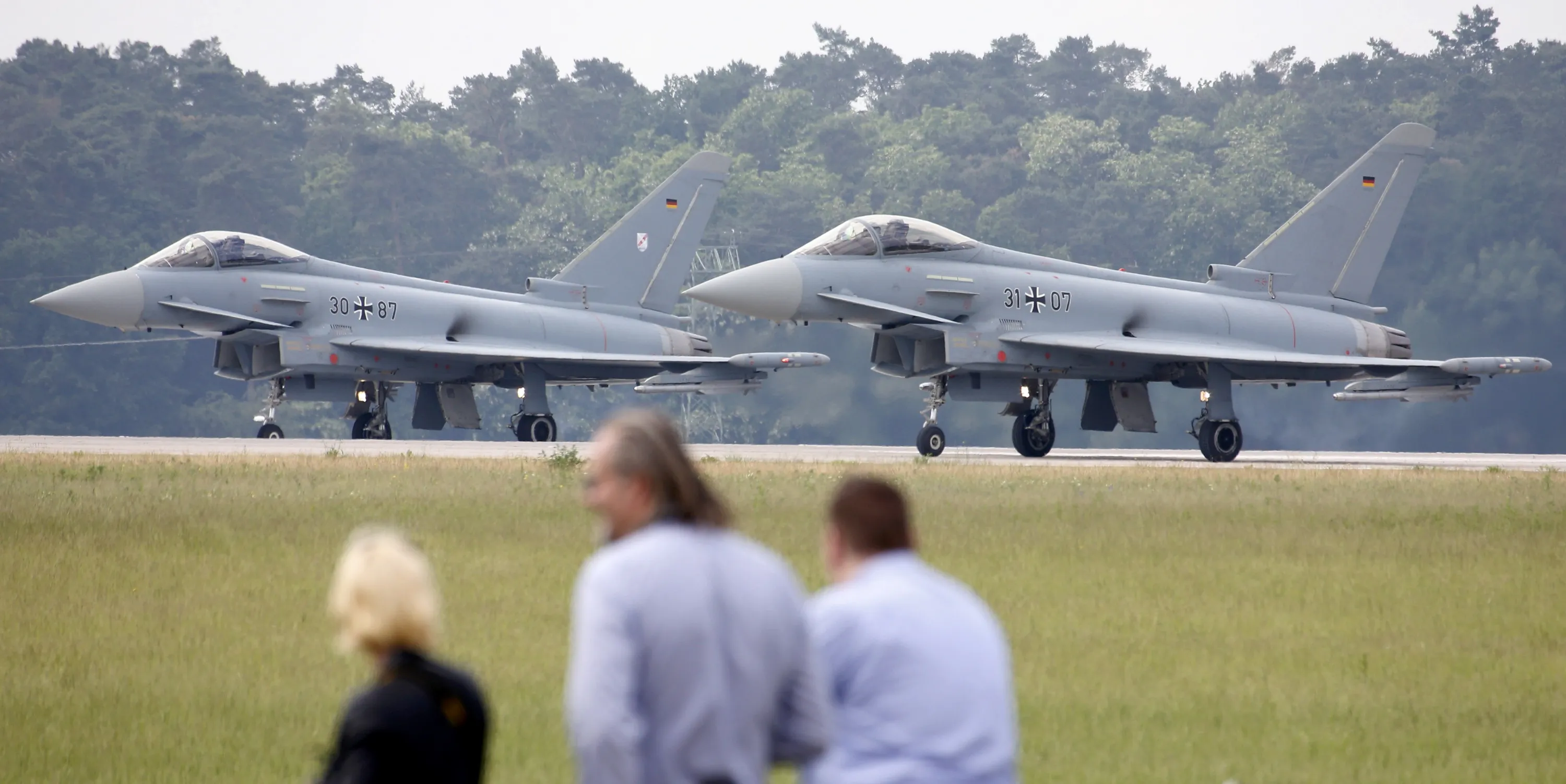 Visitors watch German Air Force Eurofighter combat aircrafts before take off at the ILA Berlin Air Show in Schoenefeld, south of Berlin, Germany, May 31, 2016. (Photo by Fabrizio Bensch/Reuters)
