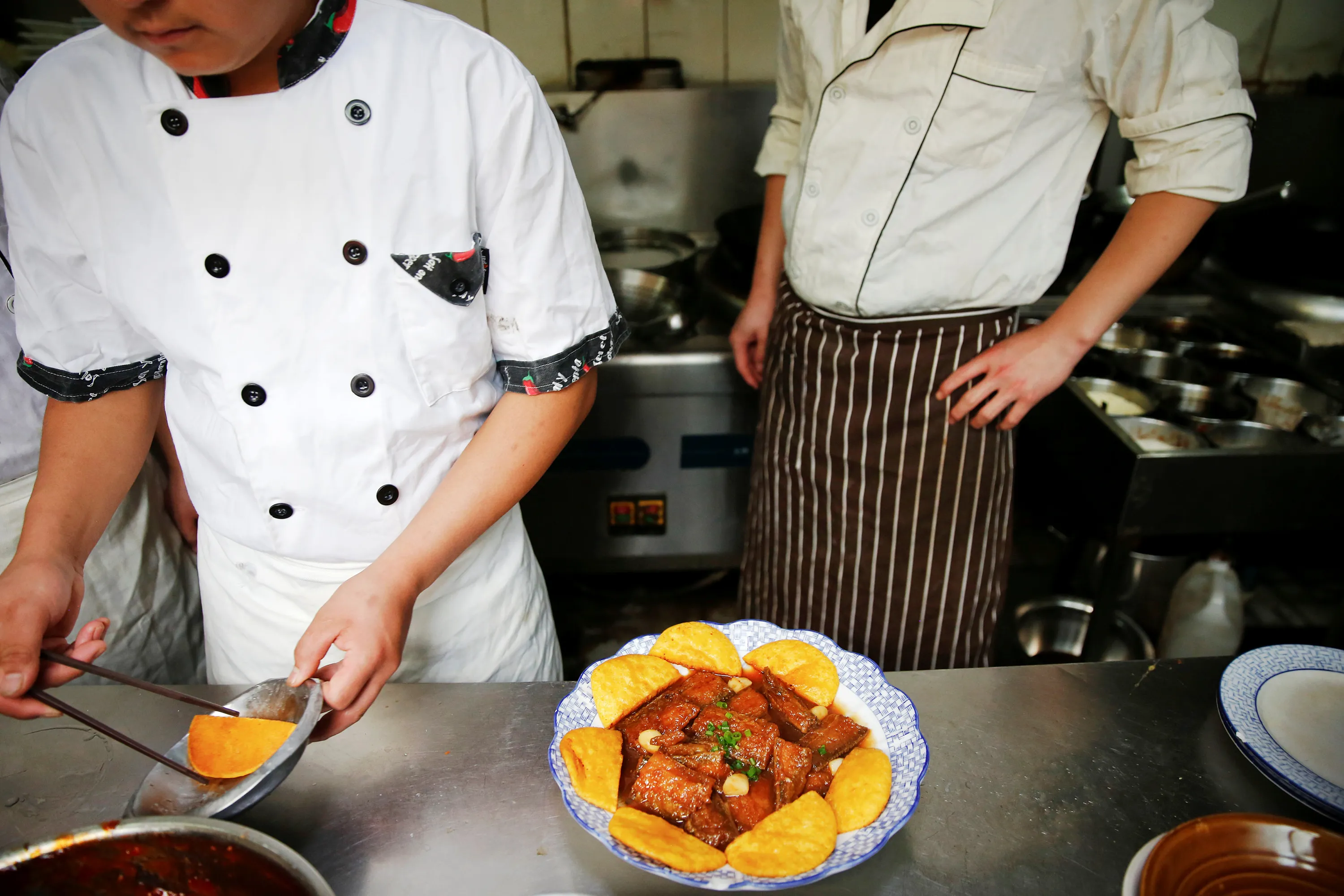Staff of Zhenxiangfudi restaurant prepare a pork meat dish at their kitchen in central Beijing, China May 18, 2016. (Photo by Damir Sagolj/Reuters)