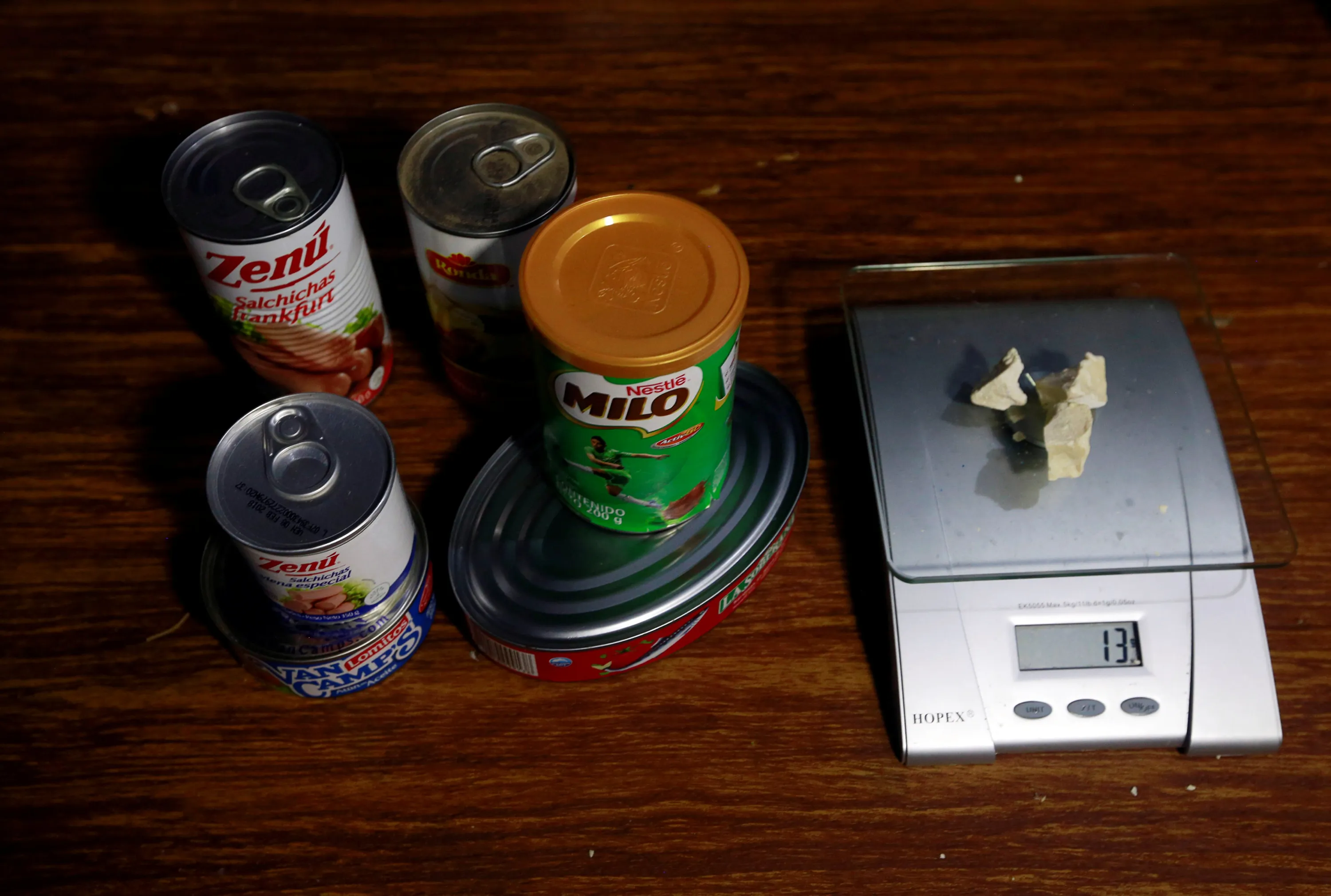 Canned goods lie next to coca paste worth $26,000 Colombian pesos at a local store in Guyabero Region, Guaviare, Colombia, May 24, 2016. (Photo by John Vizcaino/Reuters)