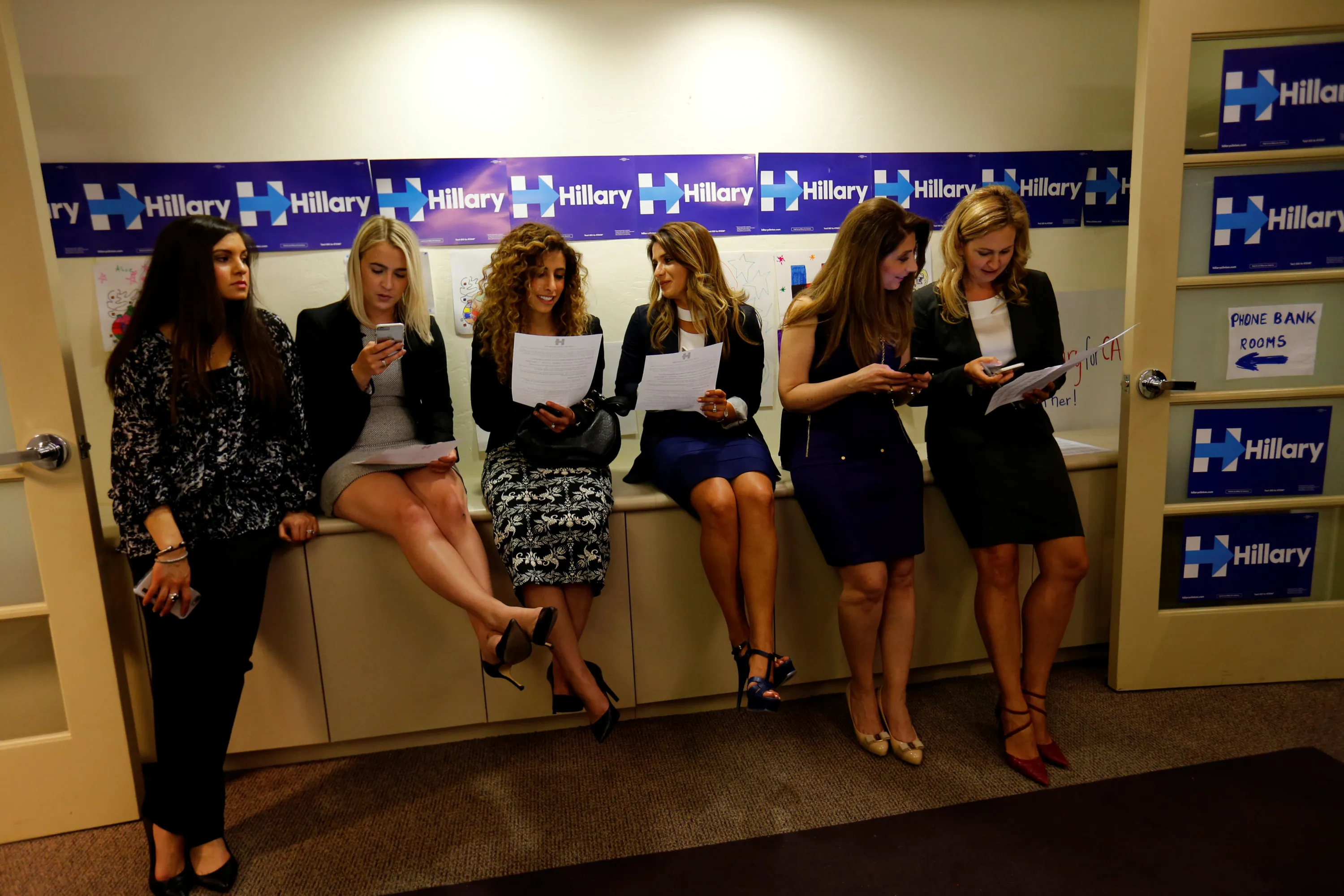Campaign workers at a local Hillary Clinton organizing office wait for U.S. Democratic presidential candidate Hillary Clinton to visit during a stop in San Diego, California, United States, June 2, 2016. (Photo by Mike Blake/Reuters)