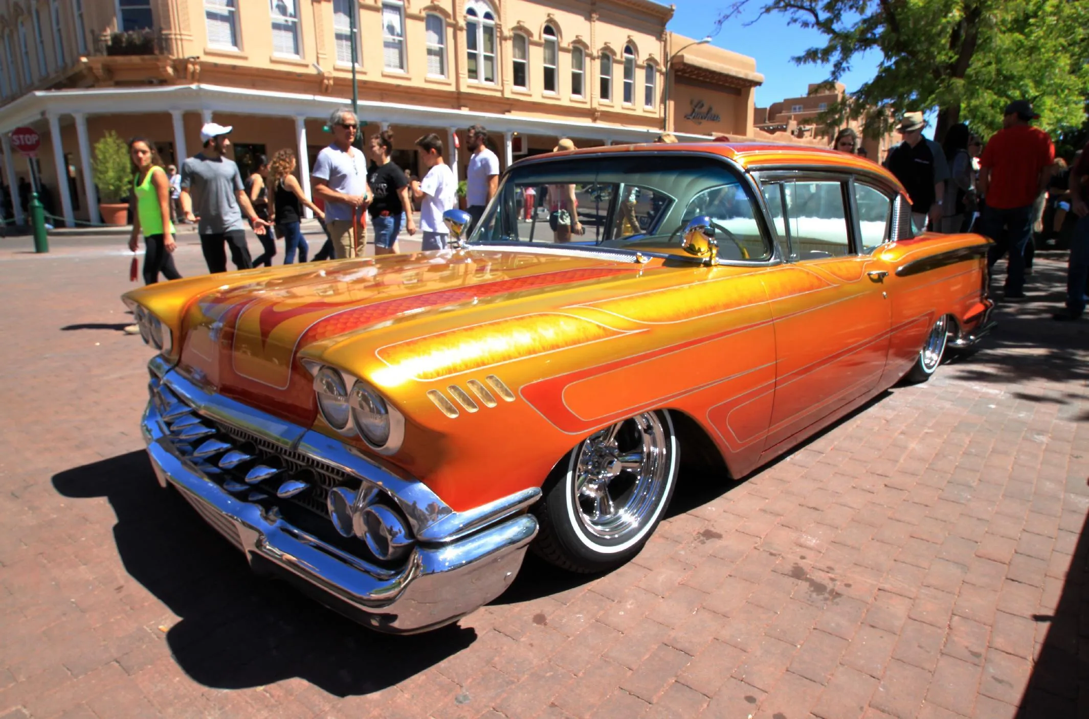 This May 22, 2016 photo shows one of the dozens of lowriders on display at the historic plaza in downtown Santa Fe, N.M., as part of the city's Lowrider Summer celebration, which includes a pair of exhibitions at the New Mexico History Museum and the New Mexico Museum of Art. (Photo by Susan Montoya Bryan/AP Photo)