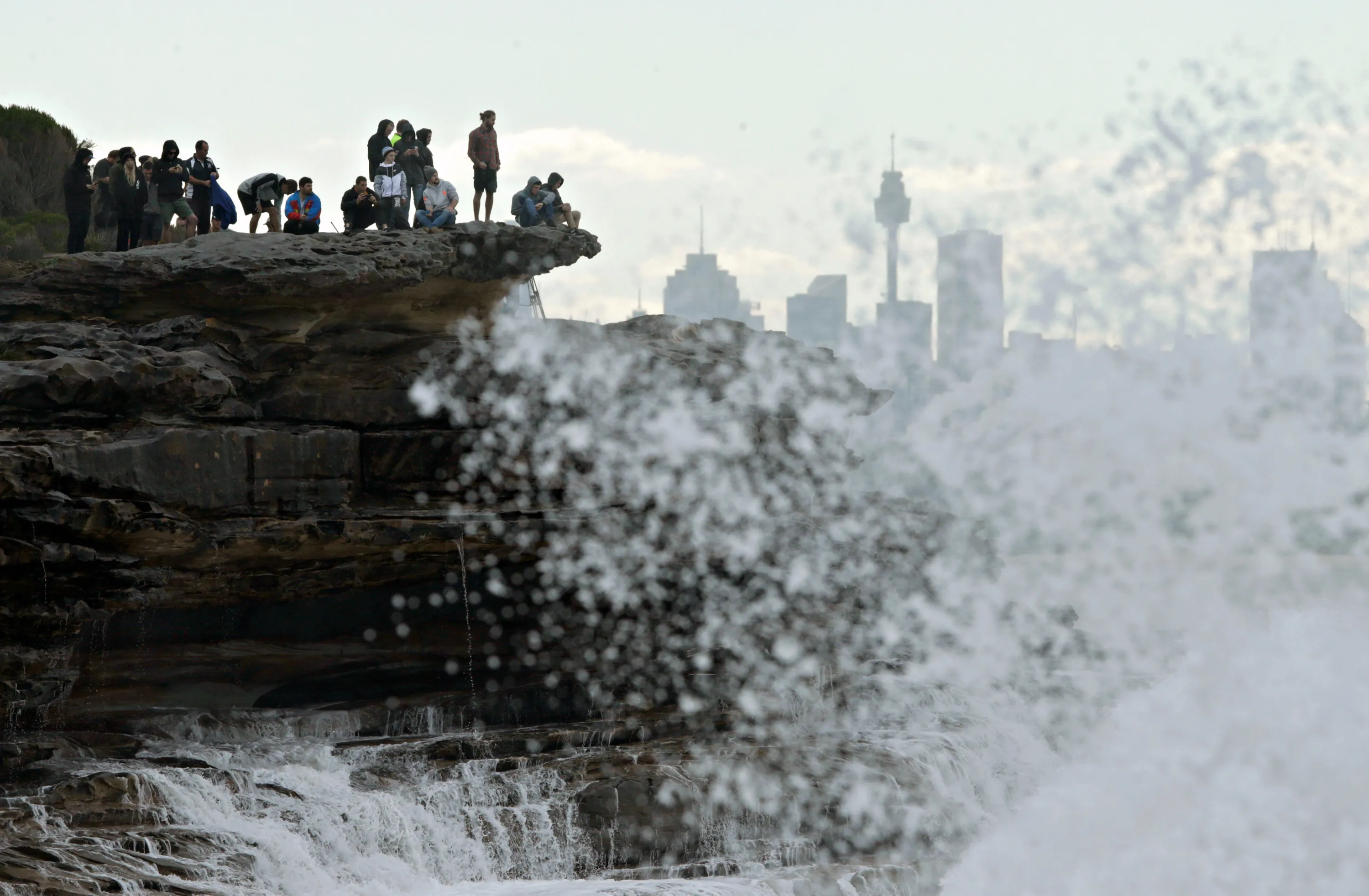 Spectators watch from a clifftop as they watch competition in heavy seas during the Cape Fear surfing tournament off Sydney's Cape Solander in Australia, June 6, 2016. (Photo by Jason Reed/Reuters)