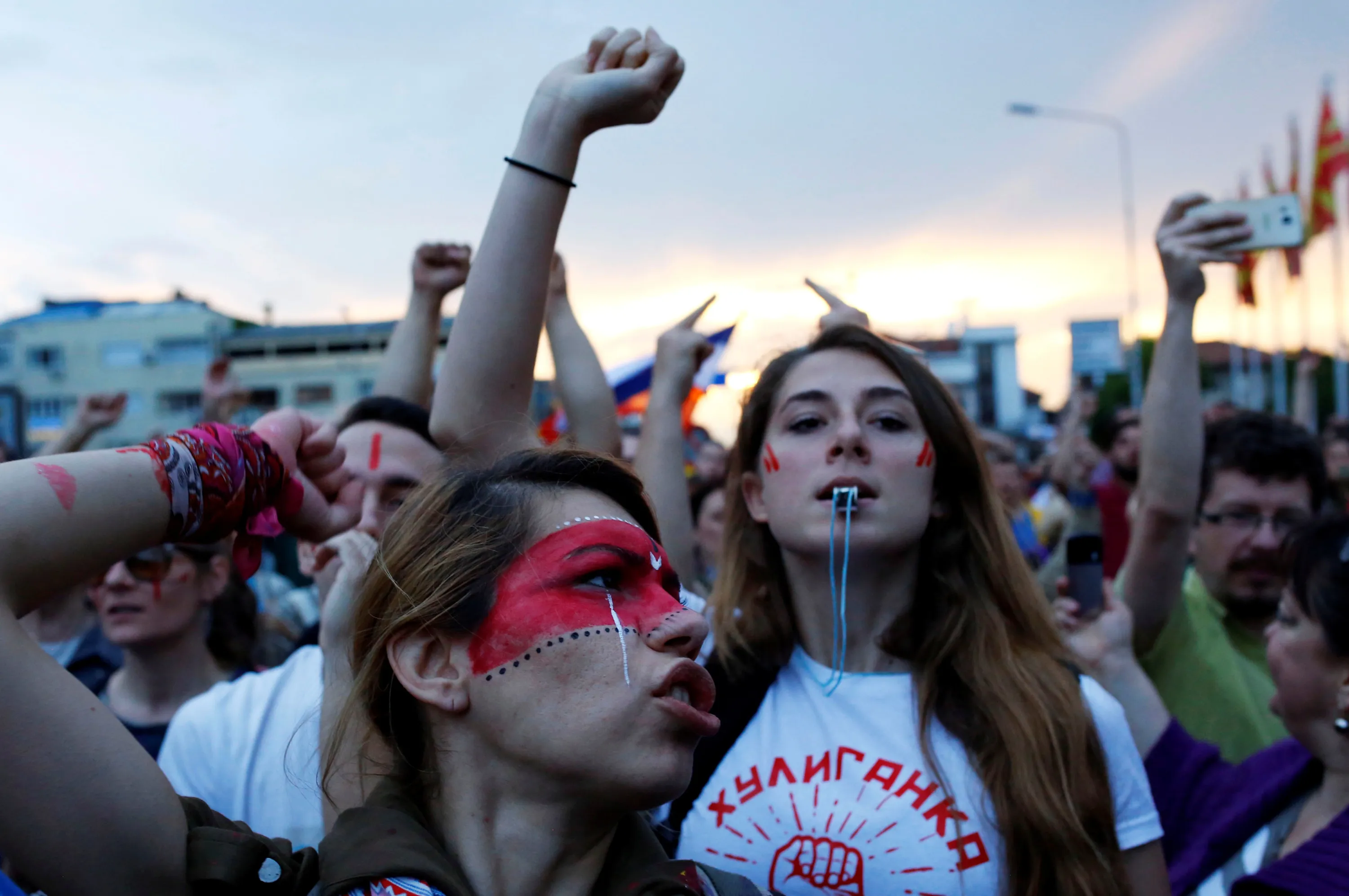 A protester shouts anti government slogans during a protest against the government, in front a government building in Skopje, Macedonia, June 6, 2016. (Photo by Ognen Teofilovski/Reuters)