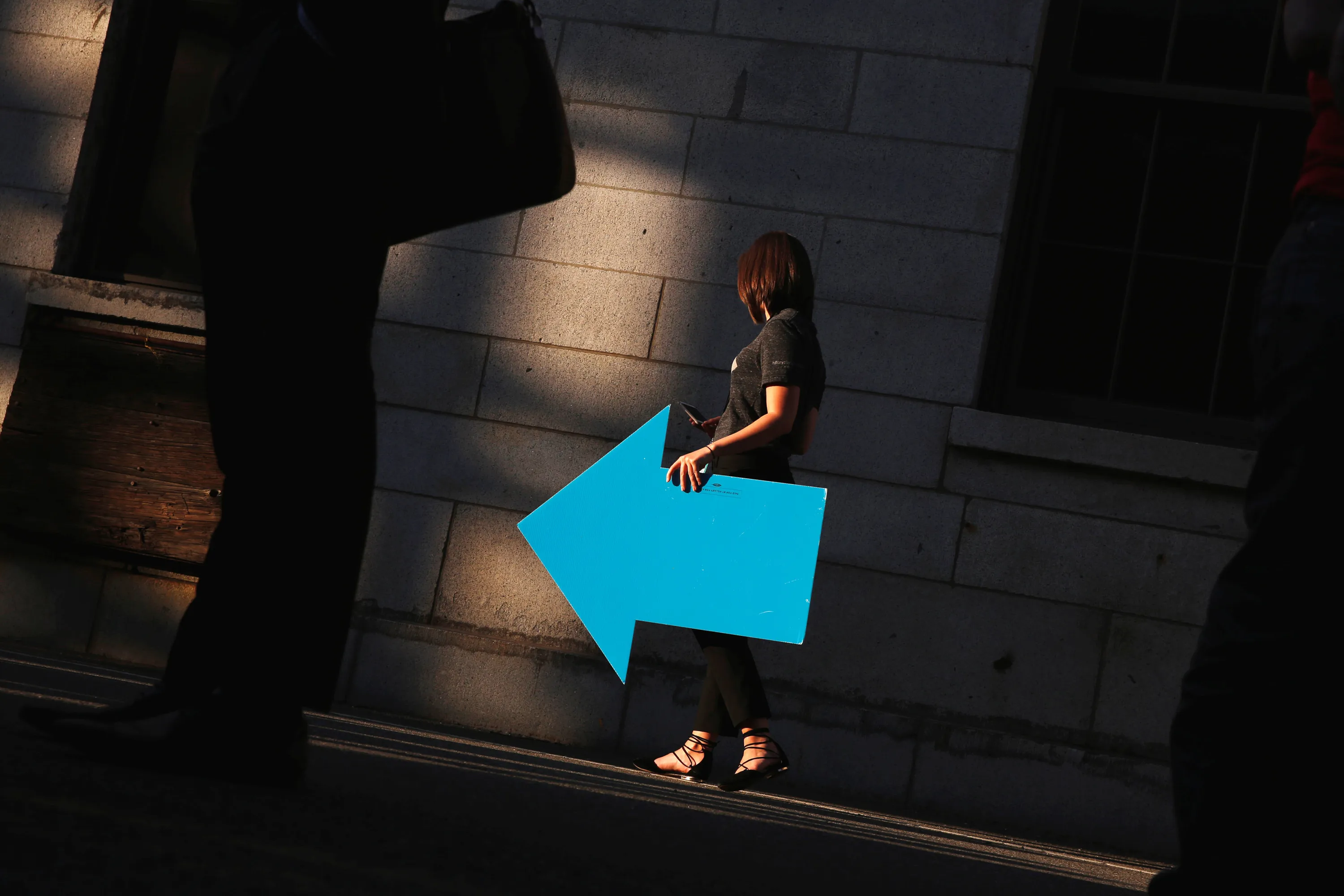 A volunteer holds a sign directing supporters towards the entrance of a rally where Democratic U.S. presidential candidate Hillary Clinton will appear to celebrate her California primary night in the Brooklyn borough of New York, U.S., June 7, 2016. (Photo by Lucas Jackson/Reuters)